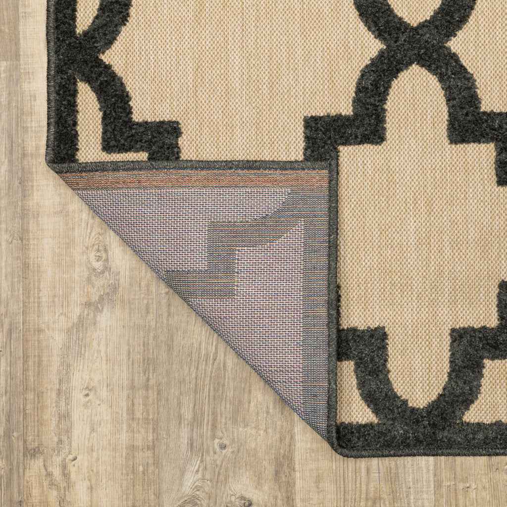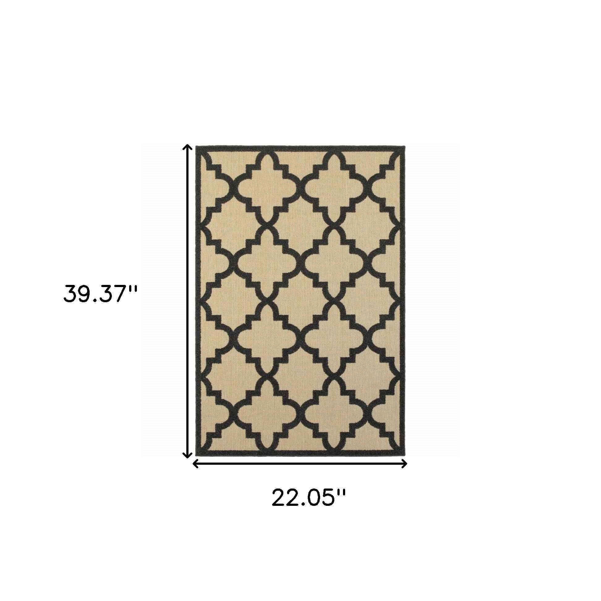 2' X 3' Beige and Black Geometric Stain Resistant Indoor Outdoor Area Rug