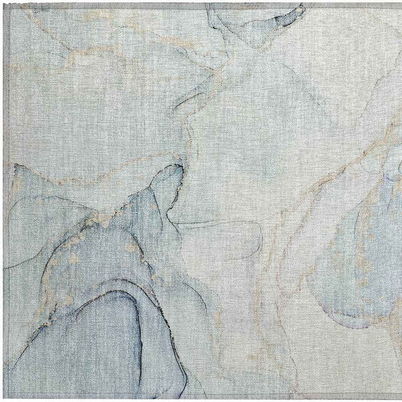 2' X 3' Beige and Blue Abstract Washable Non Skid Indoor Outdoor Area Rug
