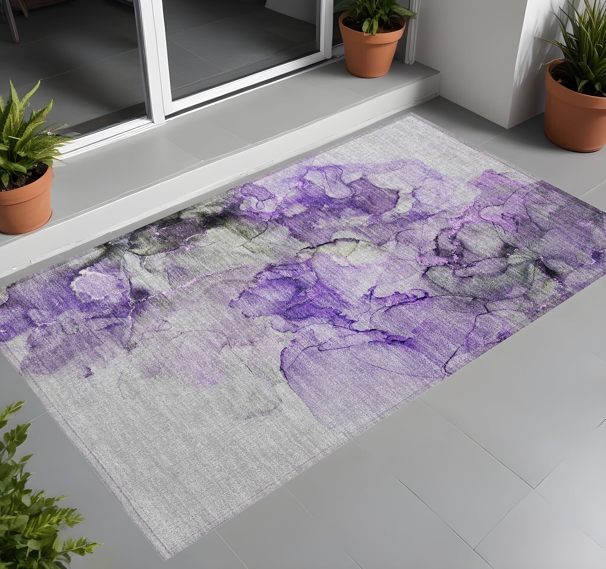 2' X 3' Purple Abstract Washable Non Skid Indoor Outdoor Area Rug