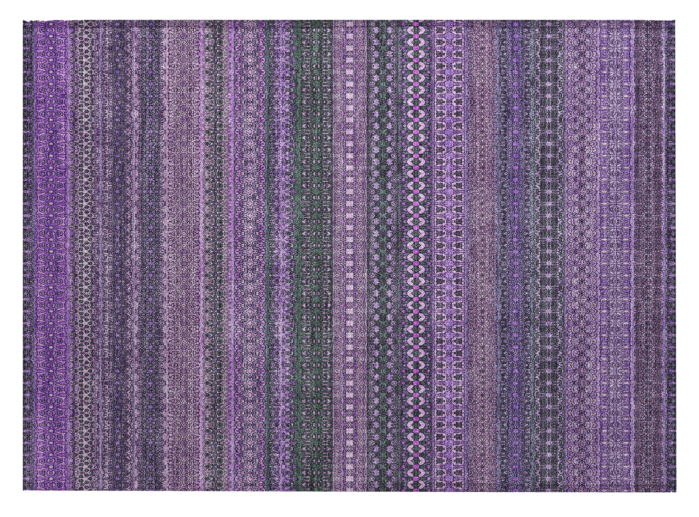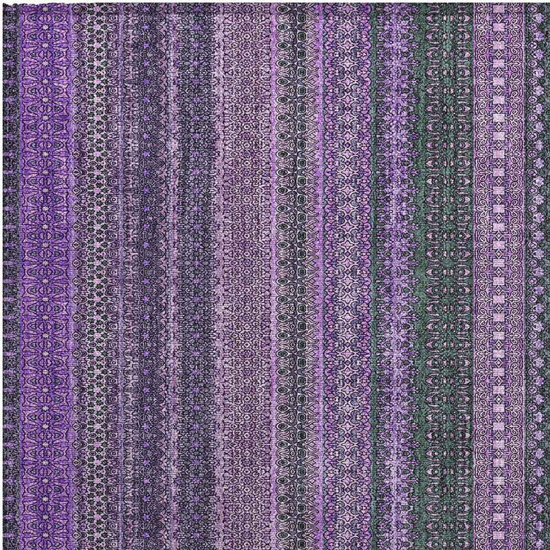 Set an inviting tone in your space with this 2-foot x 3-foot purple striped washable stain resistant non skid indoor outdoor area rug. This rectangle shaped rug features a striped design in purple to give it visual interest. A classic shape marries with good looking design for your space ideal for spaces with kids and pets, this rug is stain resistant to help repel stains and spilled liquids. Area rugs help to give warmth and sense of home to your space. 20-inch H x 30-inch W x 0.19-inch D
