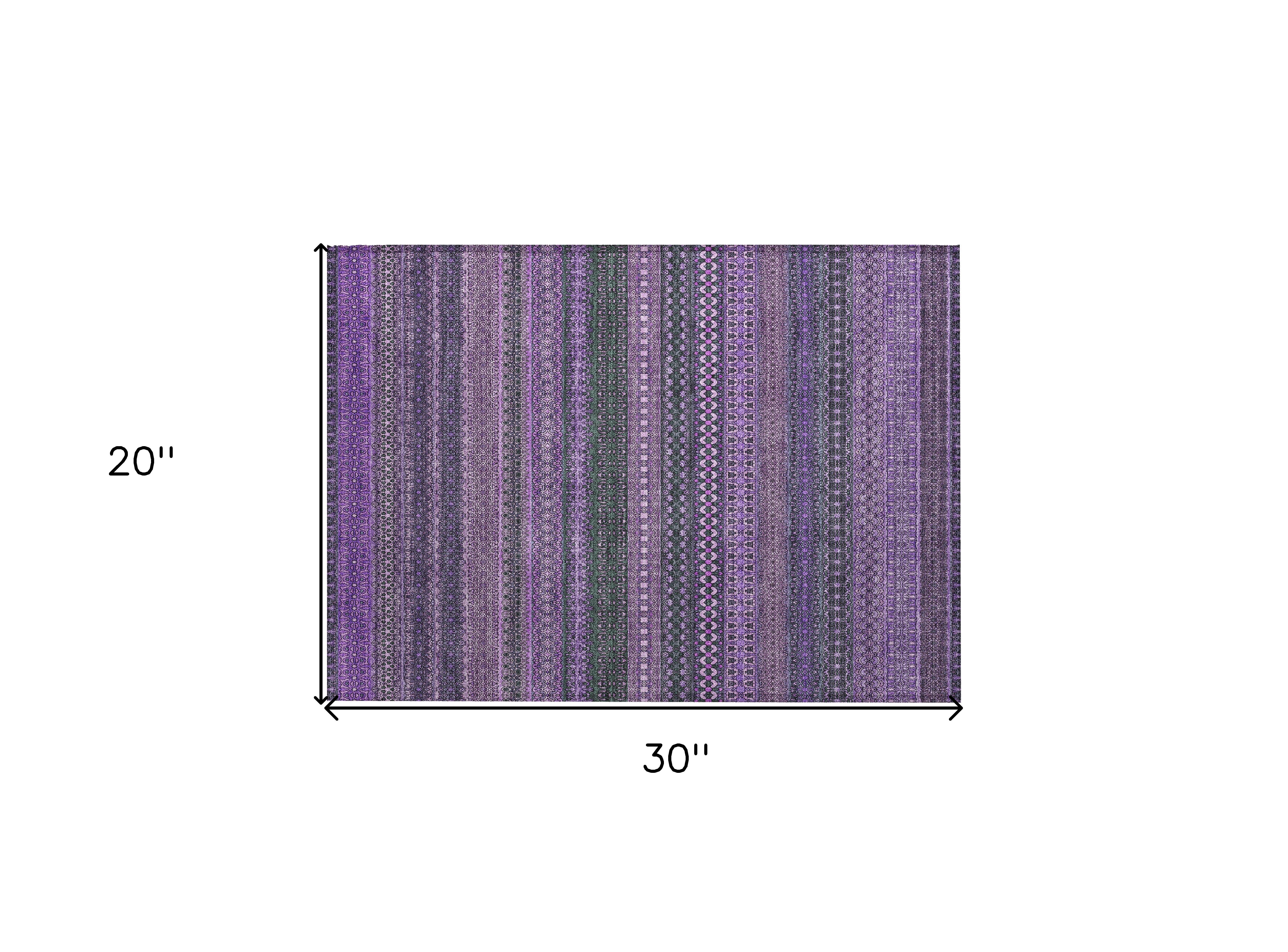 2' X 3' Purple Striped Washable Non Skid Indoor Outdoor Area Rug