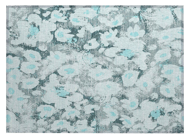 2' X 3' Teal Floral Washable Non Skid Indoor Outdoor Area Rug