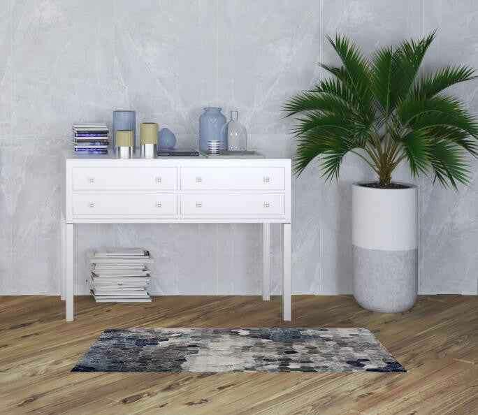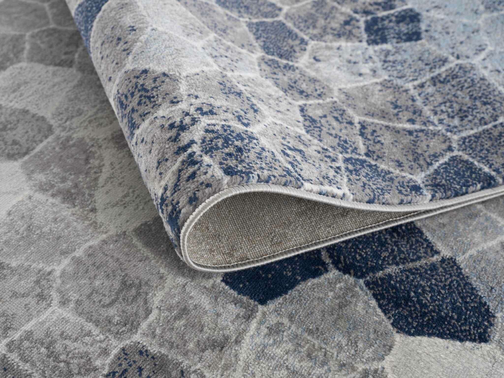 Emanating the essence of luxury and elegance, this Navy Blue Cobblestone Pattern Area Rug presents a beautifully sophisticated color palette to ornate any contemporary or casual setting. The fascinating fusion of navy blue, gray, and ivory offers a tasteful representation of a cobblestone pathway to set a relaxing and inviting tone. Skilfully crafted in Turkey with 100% polypropylene which is not only durable and easy to clean but also inherently stain-resistant to keep its sheen for years to come. The smooth and low pile construction adds to the surface interest for a rich and luxurious underfoot. Place this uniquely designed area rug against any hardwood or tile floor and it will stay put while tying together the aesthetics of its surrounding. 60” x 27” x 0.4”