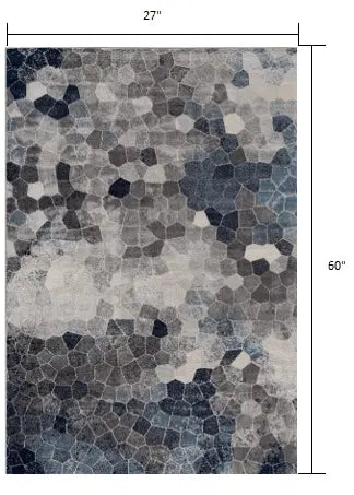 2’ X 5’ Navy Blue Cobblestone Pattern Area Rug