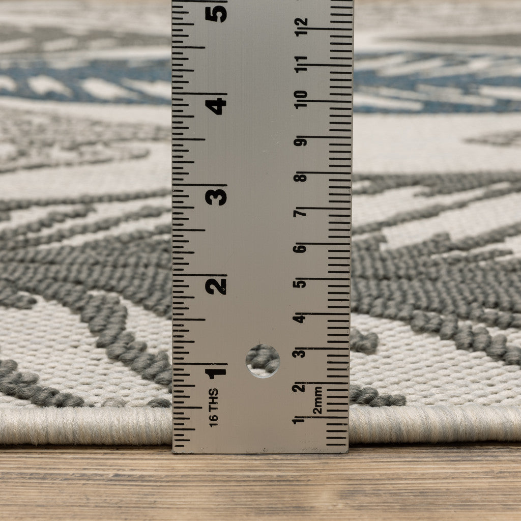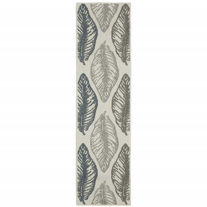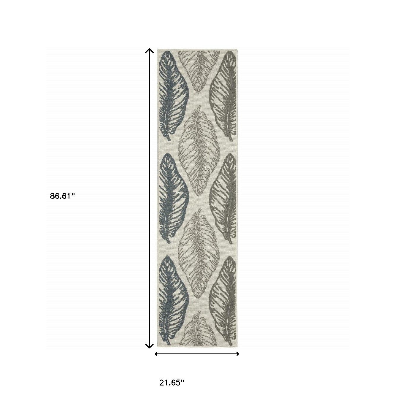 2' X 7' Beige Floral Stain Resistant Indoor Outdoor Area Rug