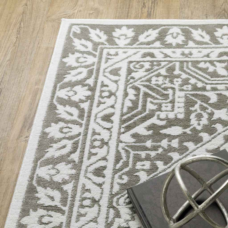 2' X 8' Grey And White Oriental Power Loom Stain Resistant Runner Rug Перейти к содержанию