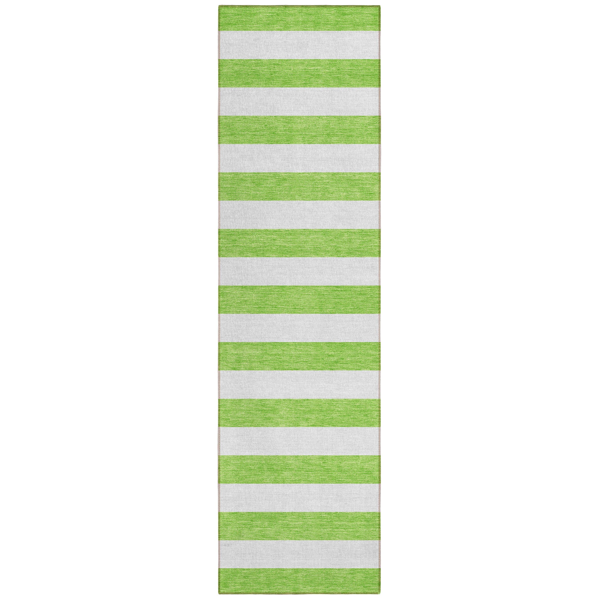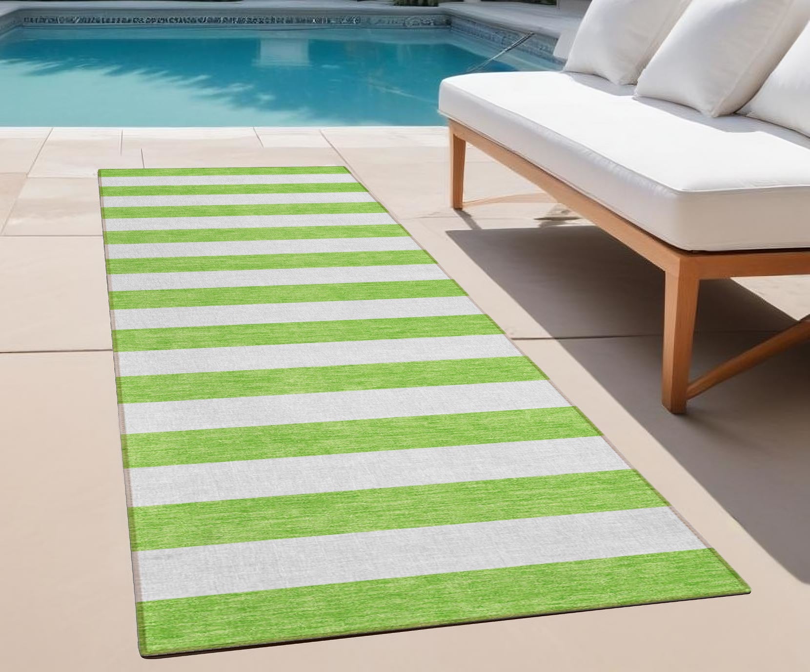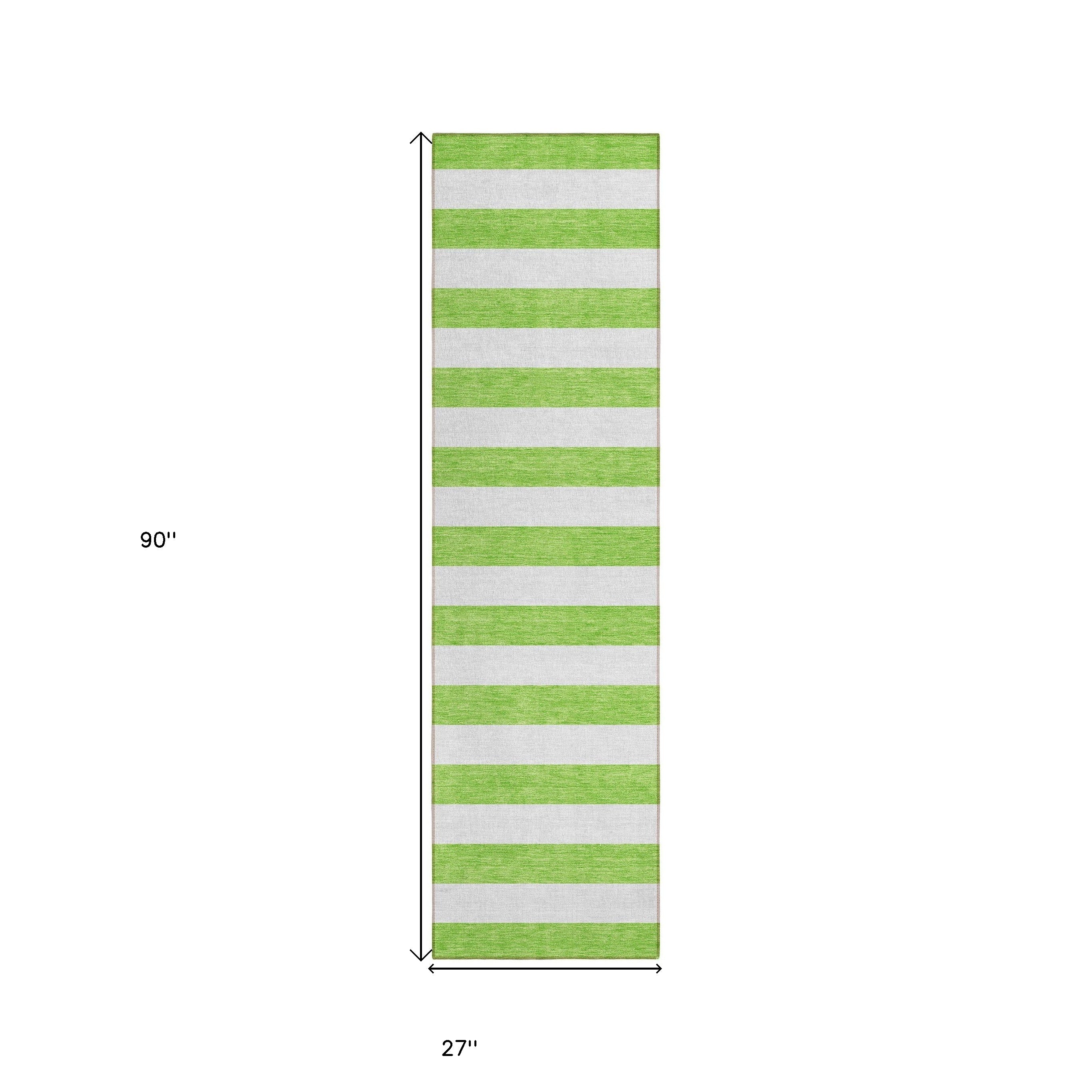 2' X 8' Lime Green and White Striped Washable Indoor Outdoor Runner Rug