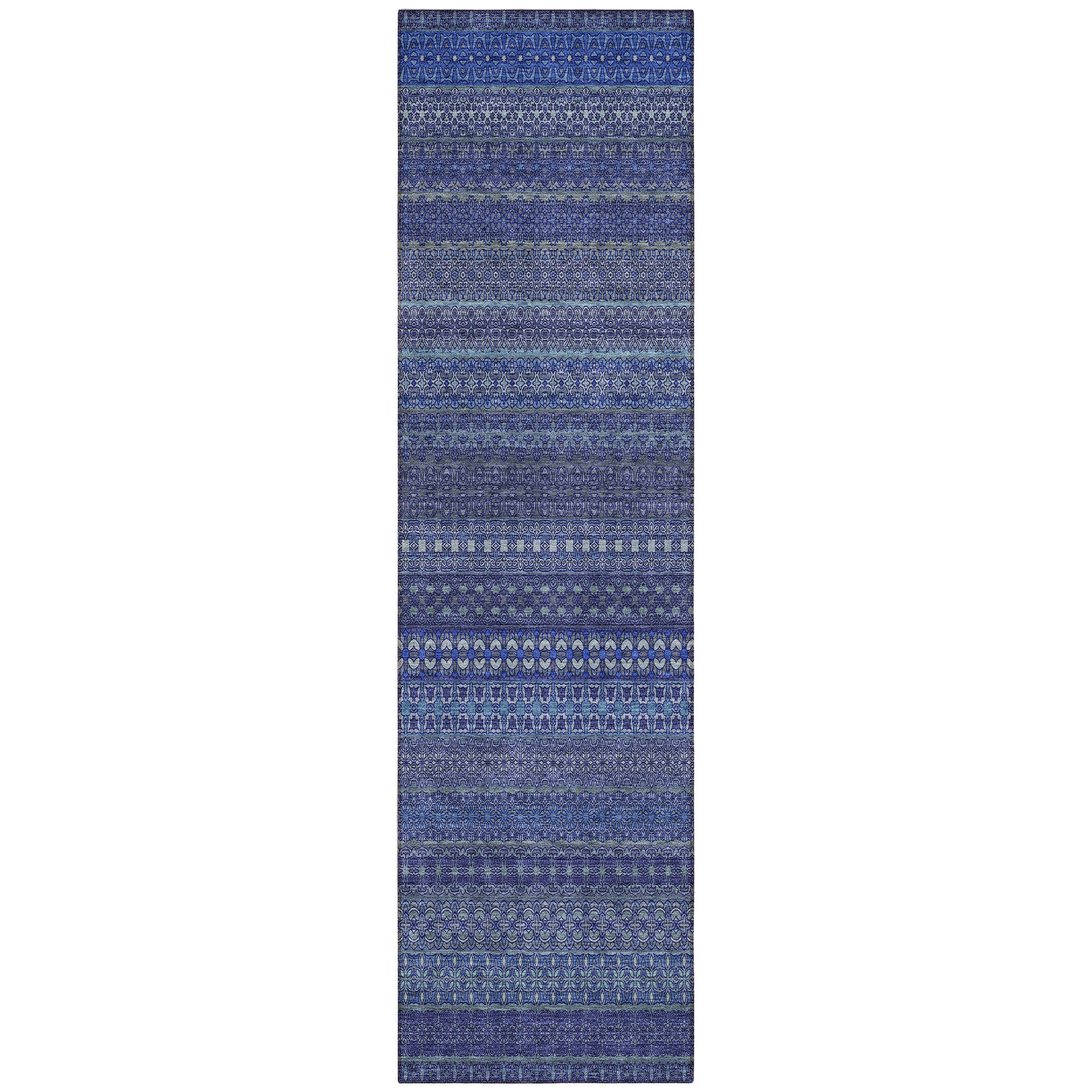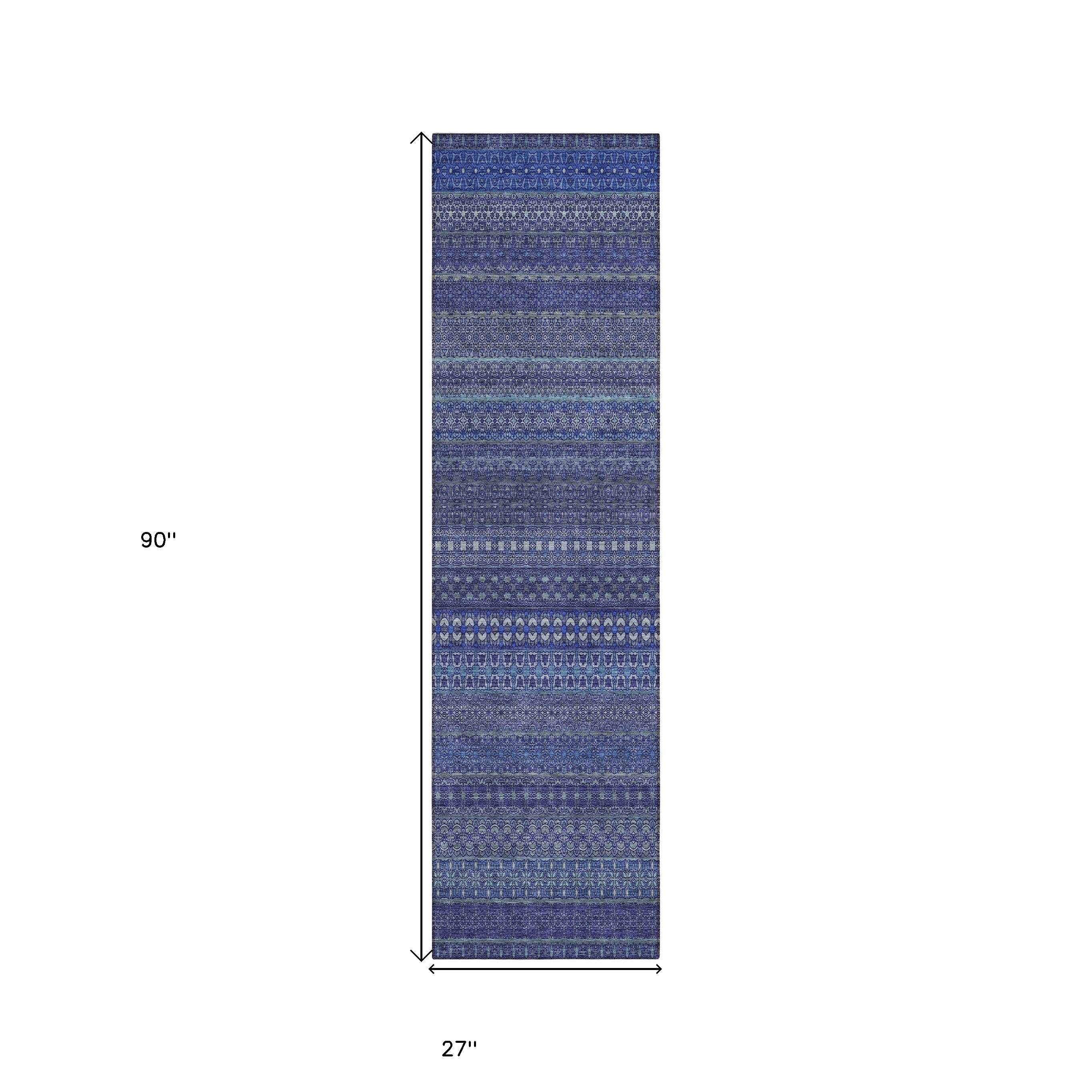 2' X 8' Navy Blue Striped Washable Indoor Outdoor Runner Rug