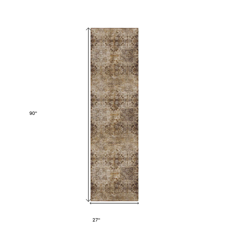 2' X 8' Taupe Floral Medallion Washable Non Skid Indoor Outdoor Runner Rug