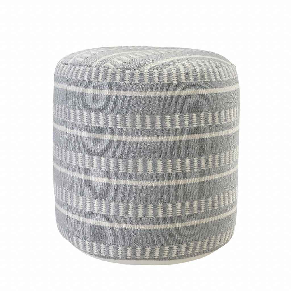 Get ready to relax with this 20" blue polyester round striped indoor outdoor pouf ottoman. Add chic style to your space with this fun pouf that not only looks cool but can be a great footrest or extra seat when needed. Expertly upholstered with padding and soft 100% polyester in a striped pattern, this ottoman is as comfortable as it is good looking. Easy to blend into most any room, an ottoman is a way to add a good-looking accent to your space that can also be practical and useful. . 20" H x 20" W x 20" D