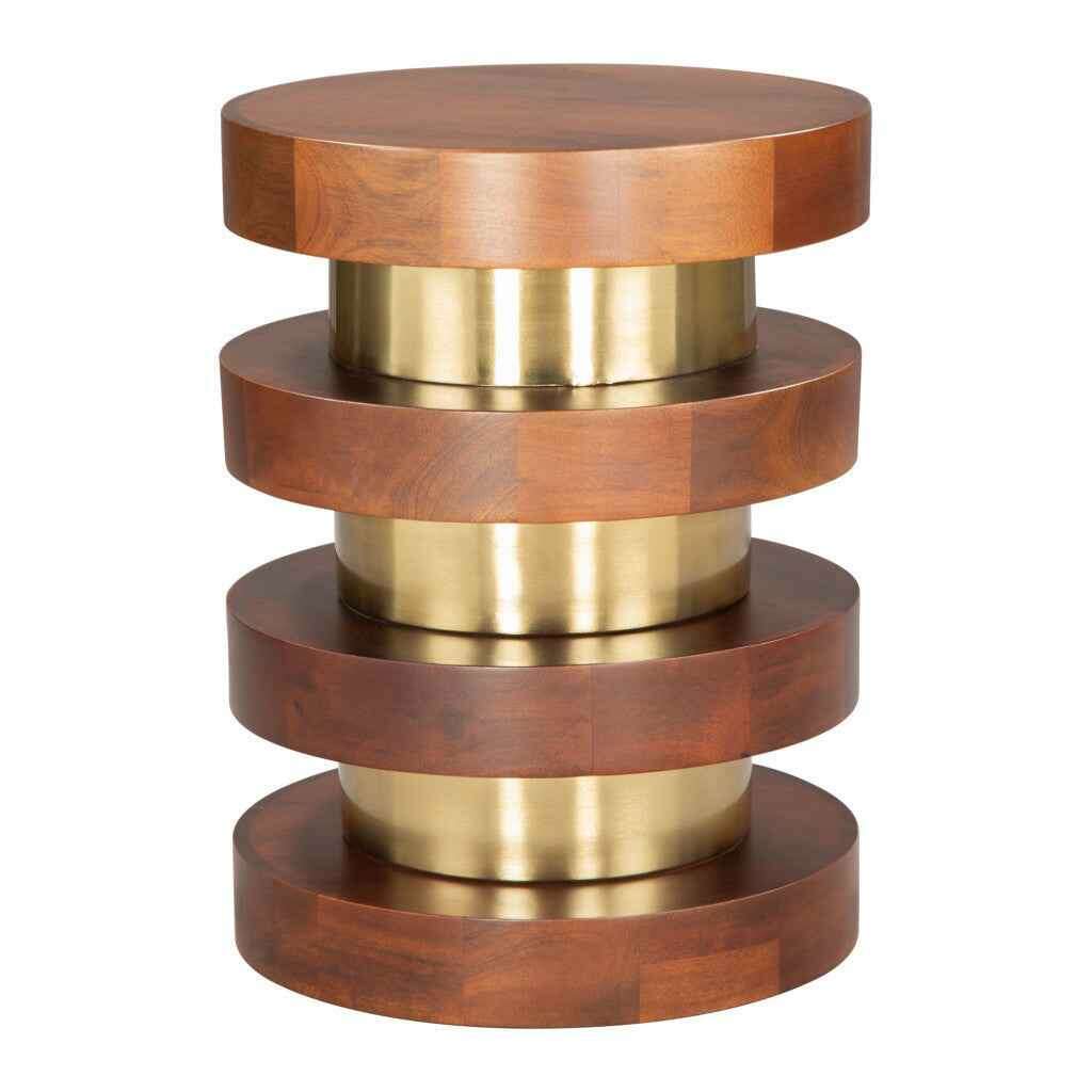 20" Brown and Gold Solid Wood and Iron Round Pedestal End Table - Перейти к содержанию