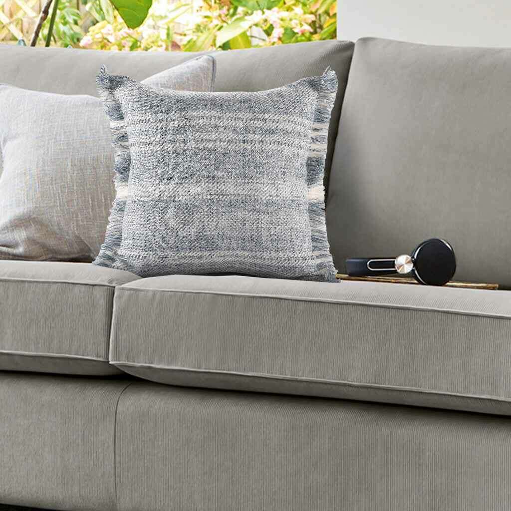 20" X 20" Denim Blue And Ivory Polyester Striped Zippered Pillow