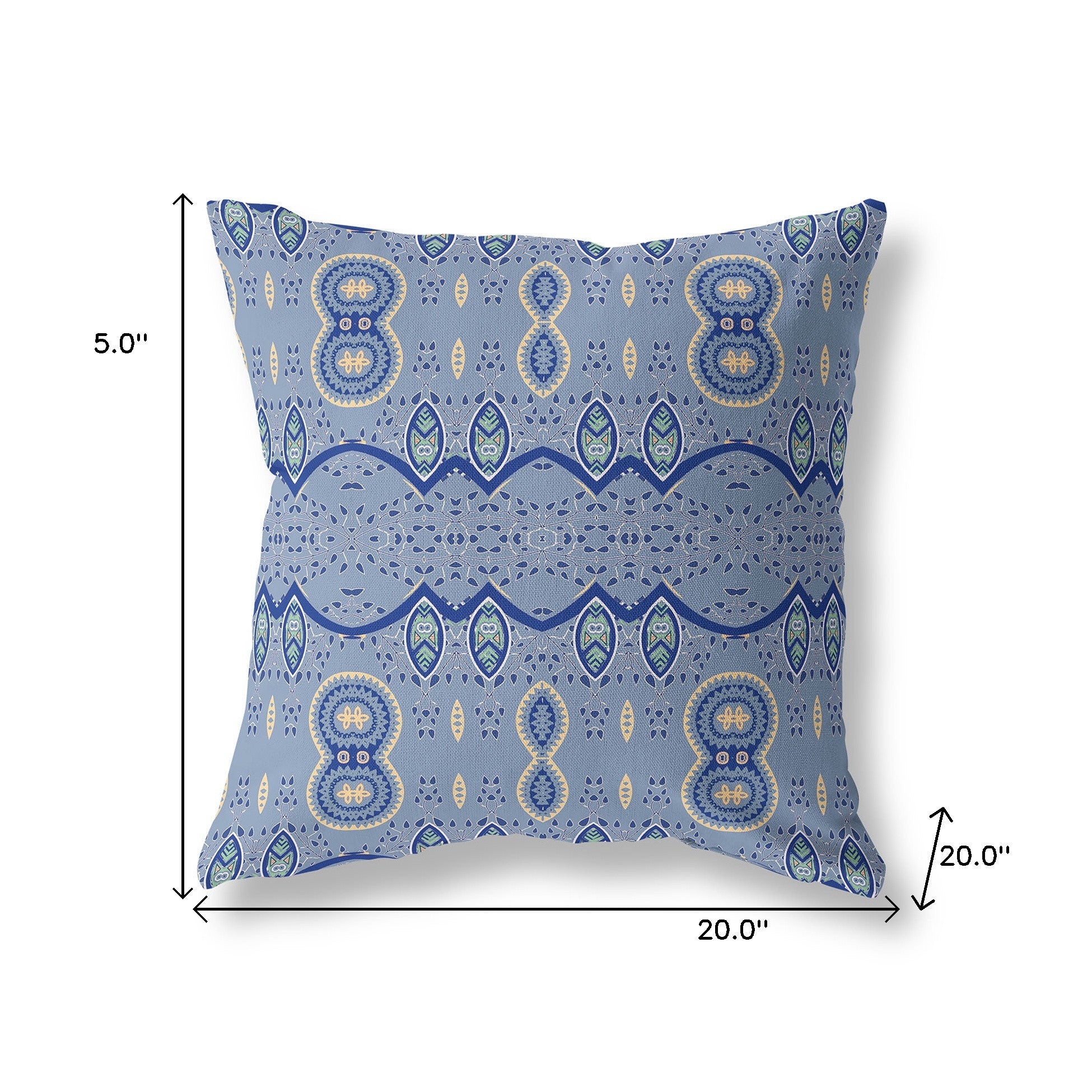 20" X 20" Muted Navy Blown Seam Paisley Indoor Outdoor Throw Pillow