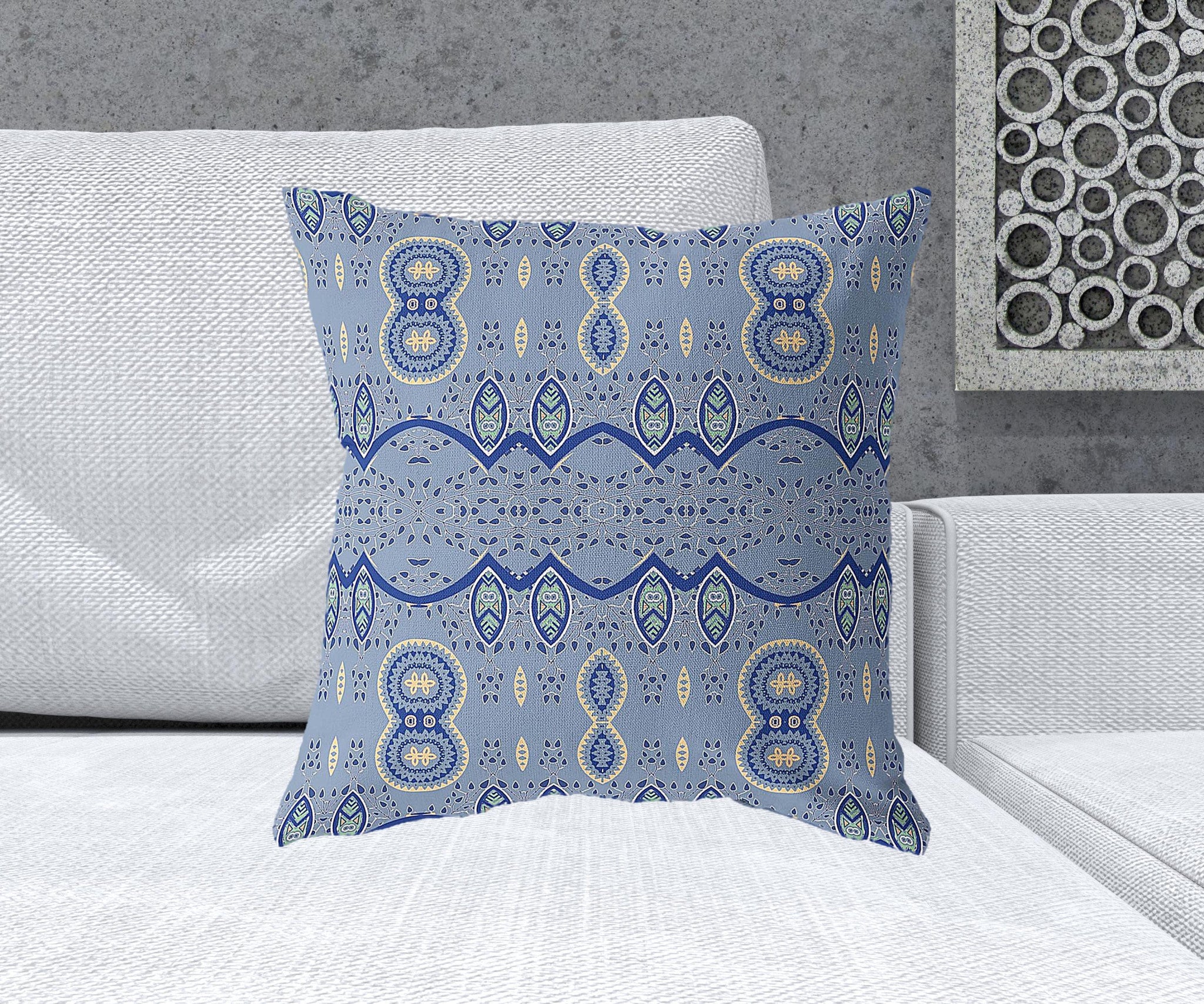 This 20" x 20" muted navy blown seam paisley indoor outdoor throw pillow will add a beautiful decorative accent to your decor. Durable muted navy broadcloth has been used to give this pillow a beautiful look that will stand the test of time. Durable and easy to care for this pillow is designed to withstand the elements and still look great. A great decorative accessory for your favorite chair or to accent your sofa. 5" H x 20" W x 20" D