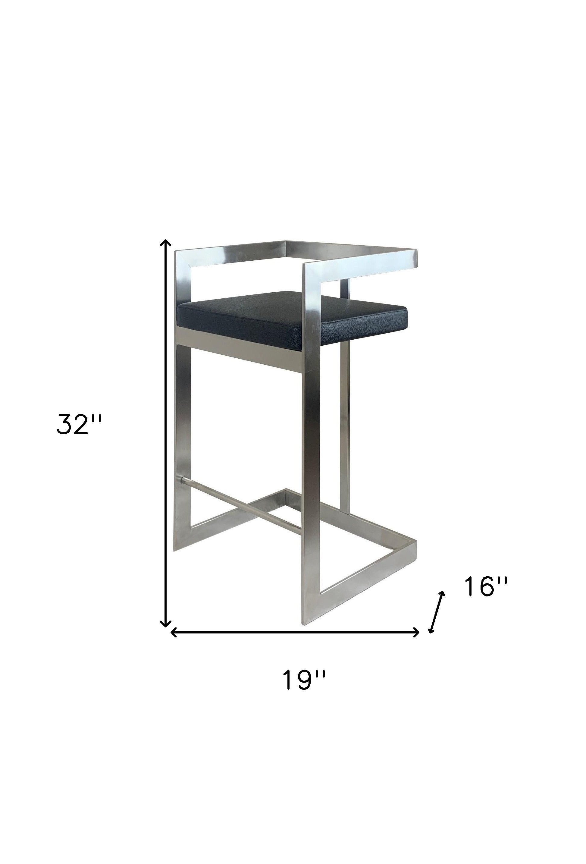 26" Black and Silver Faux Leather and Metal Low Back Counter Height Bar Chair