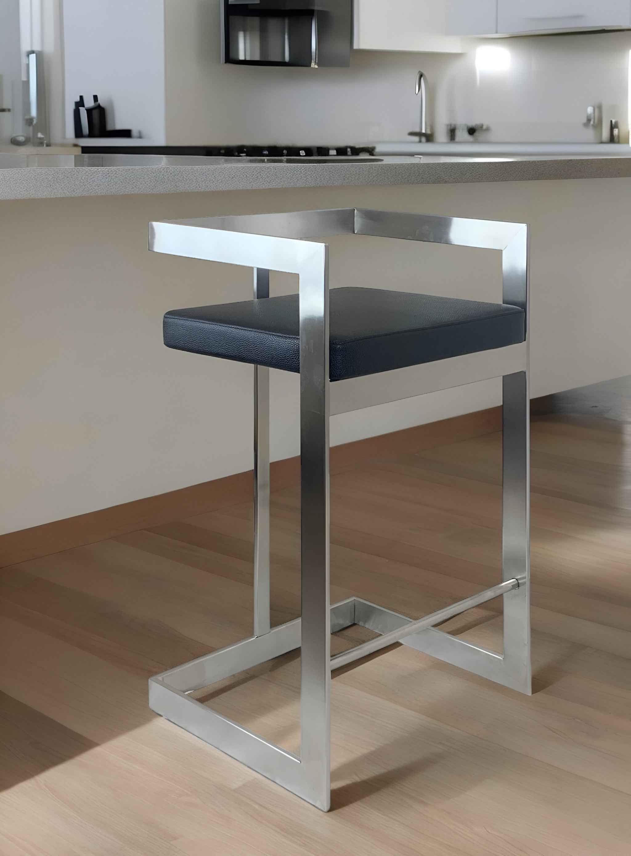 26" Black and Silver Faux Leather and Metal Low Back Counter Height Перейти к содержанию