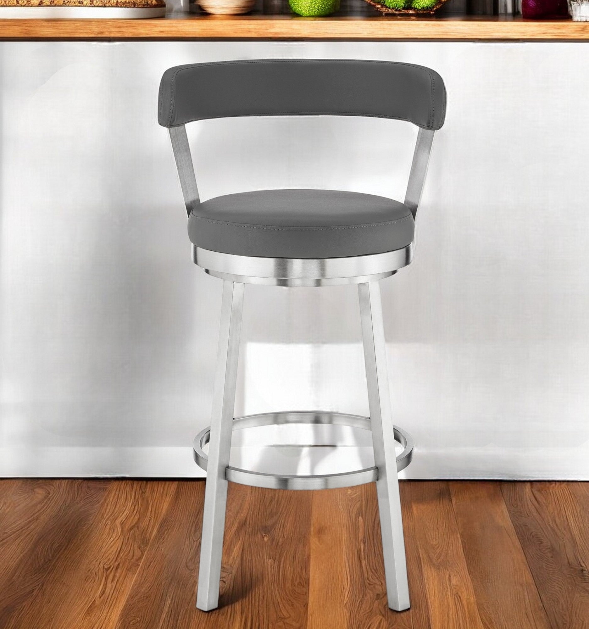26" Gray And Silver Iron Swivel Backless Counter Height Bar Chair Перейти к содержанию