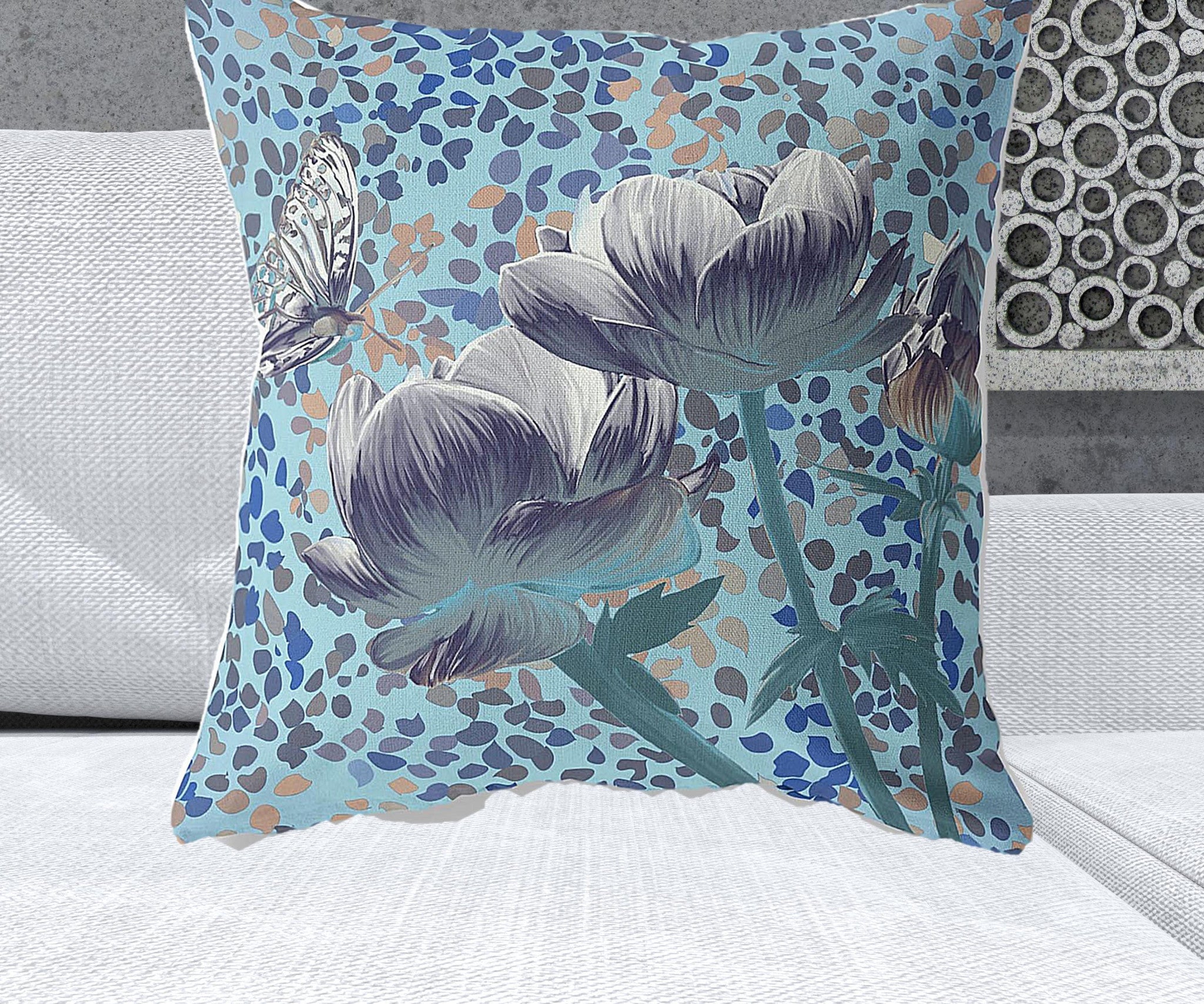 26" x 26" Indigo Butterfly Blown Seam Floral Indoor Outdoor Throw Pillow