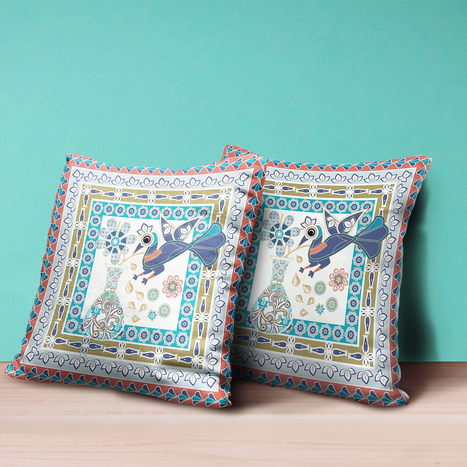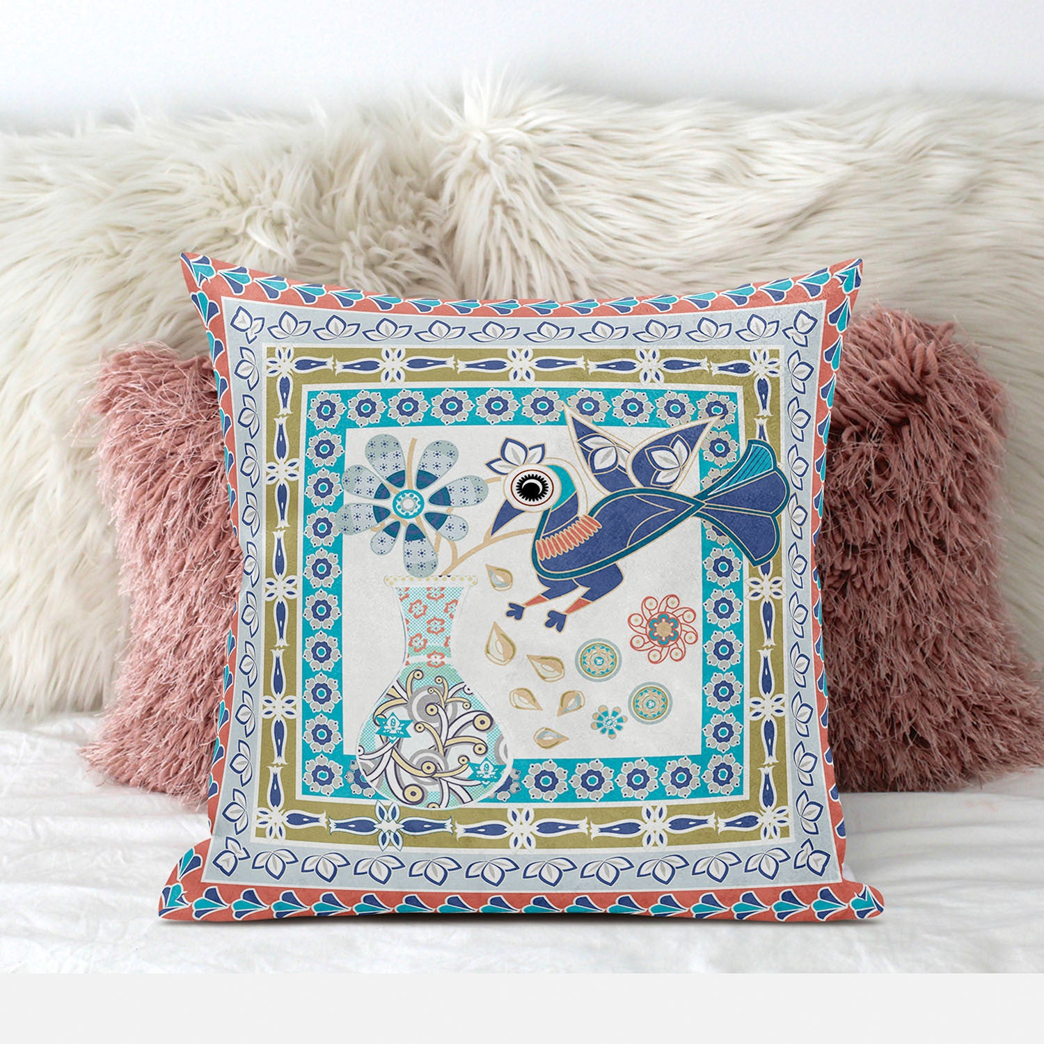 26" x 26" Light Green Peacock Blown Seam Floral Indoor Outdoor Throw Pillow