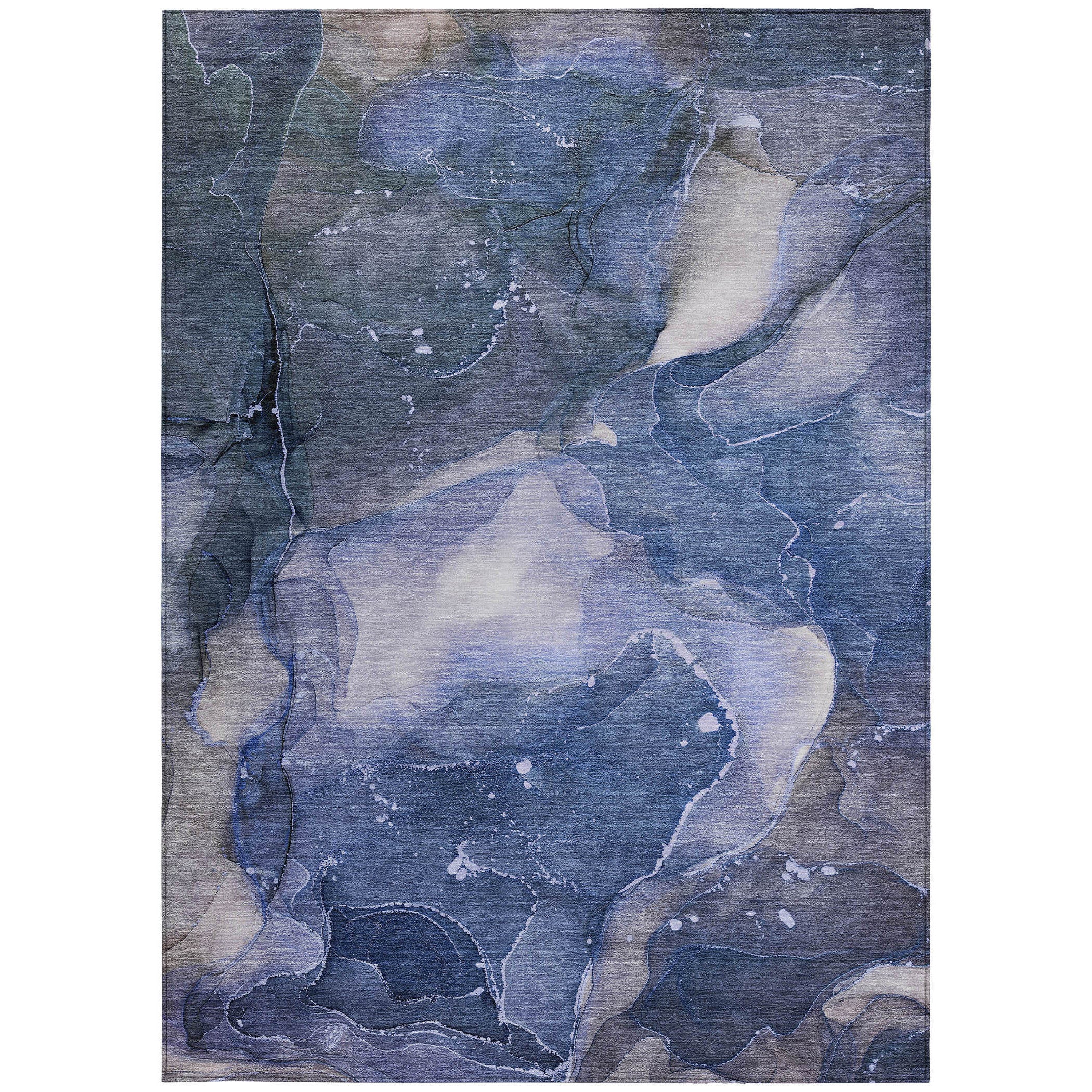 3' X 5' Blue Abstract Washable Non Skid Indoor Outdoor Area Rug