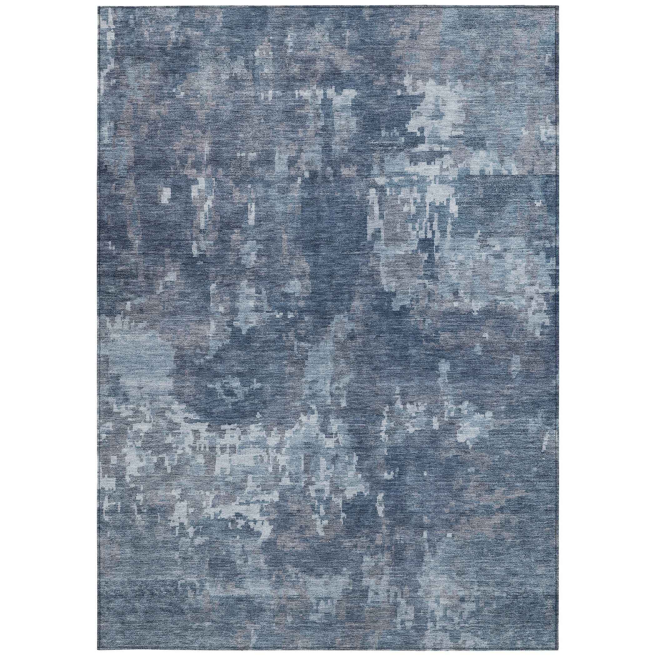 3' X 5' Blue And Ivory Abstract Washable Indoor Outdoor Area Rug