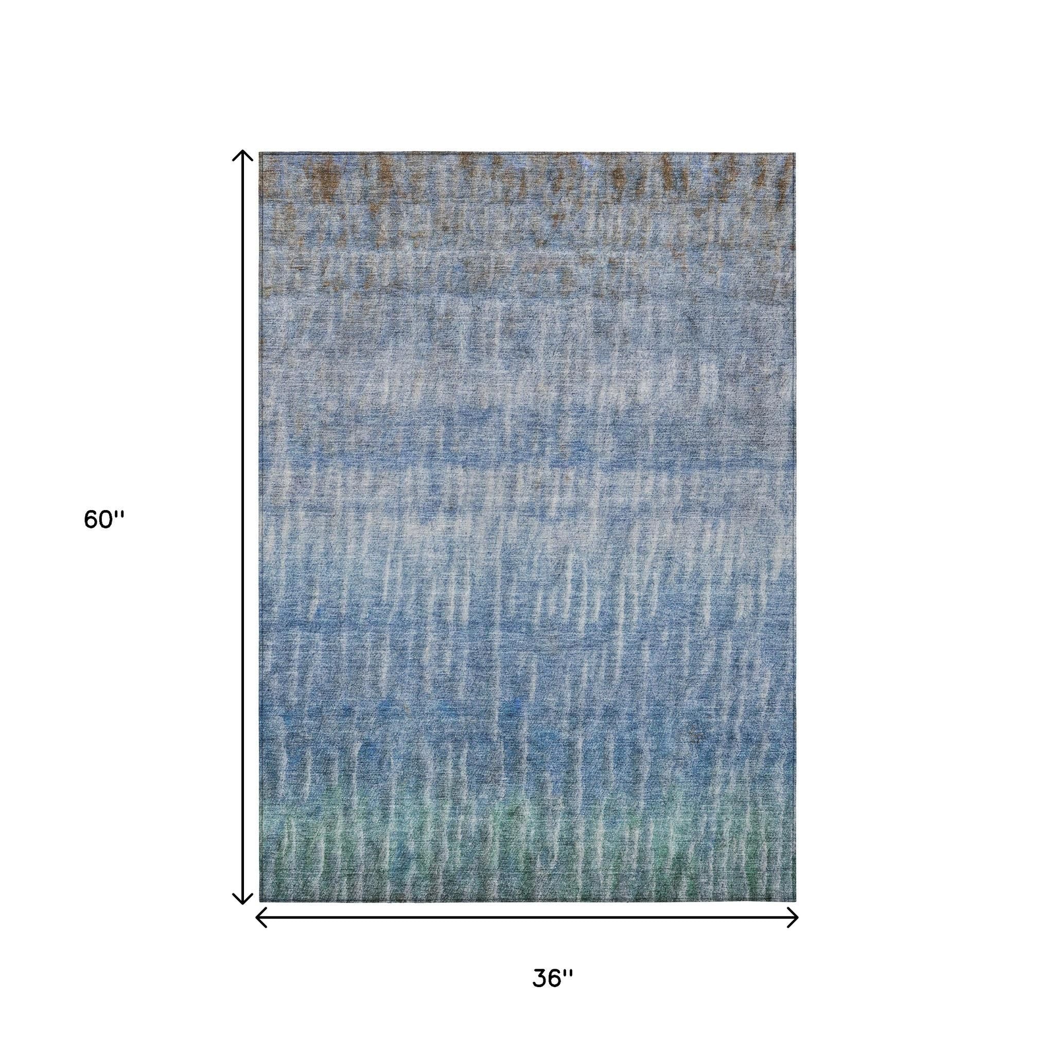 3' X 5' Blue And Ivory Abstract Washable Indoor Outdoor Area Rug