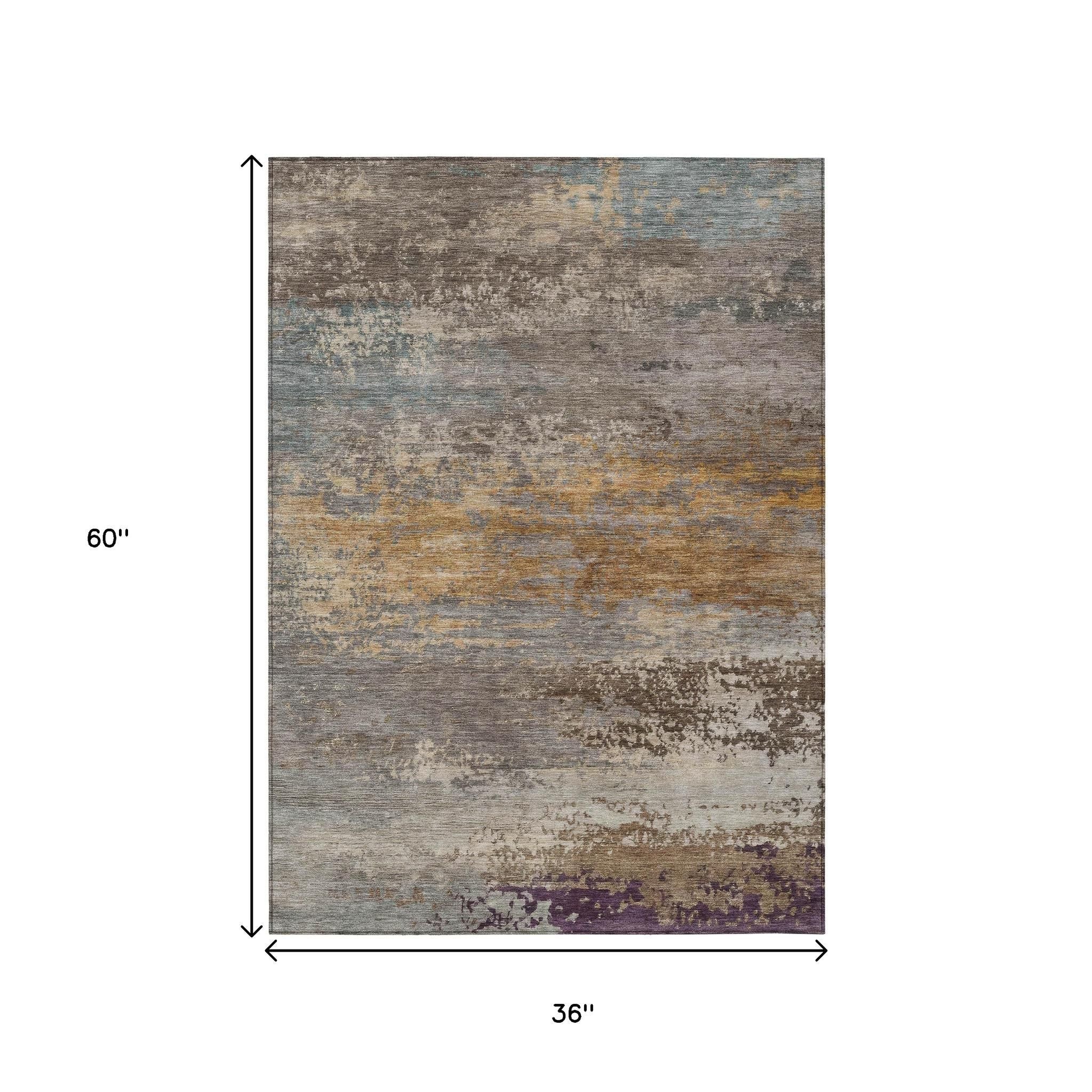 3' X 5' Brown Gray And Purple Abstract Washable Indoor Outdoor Area Rug