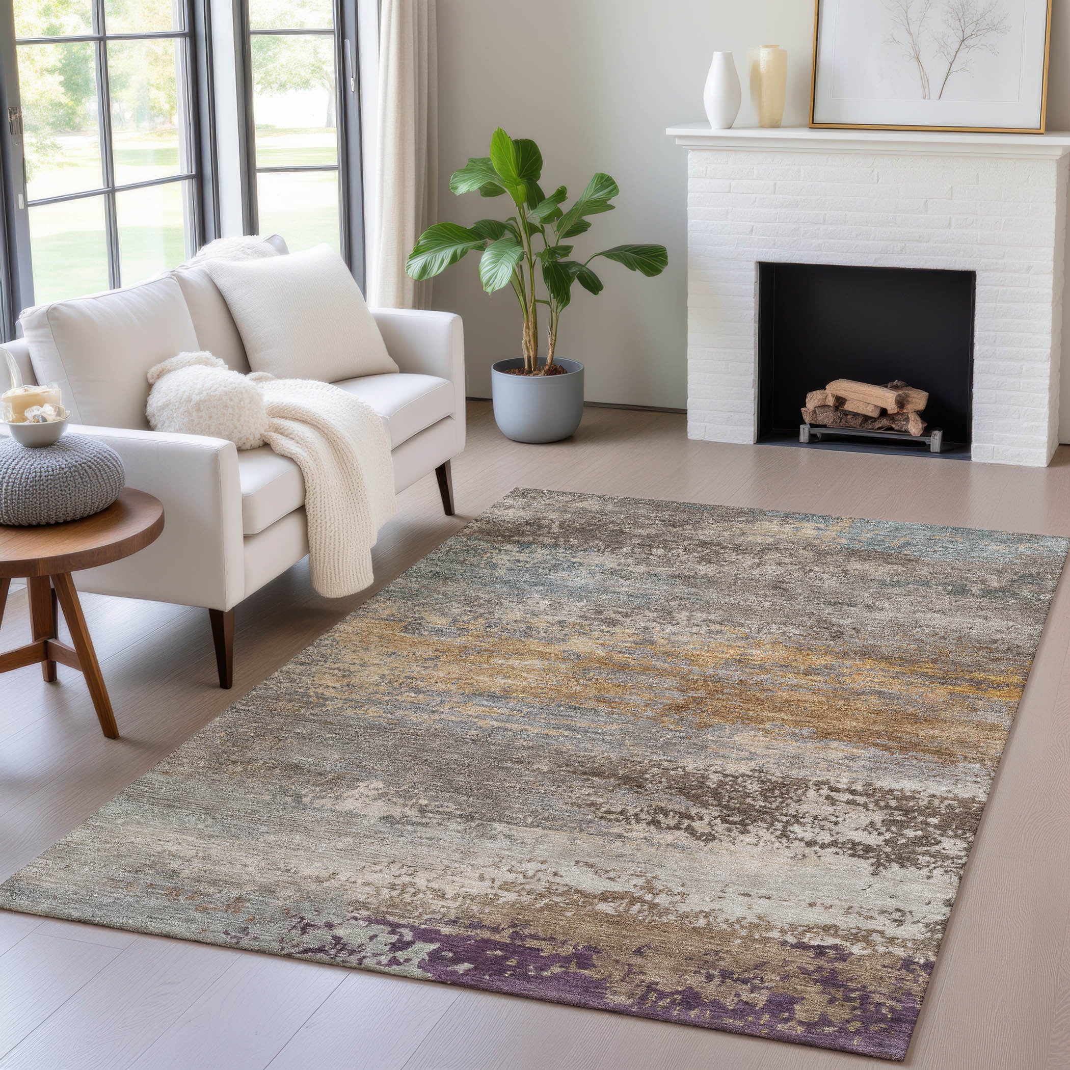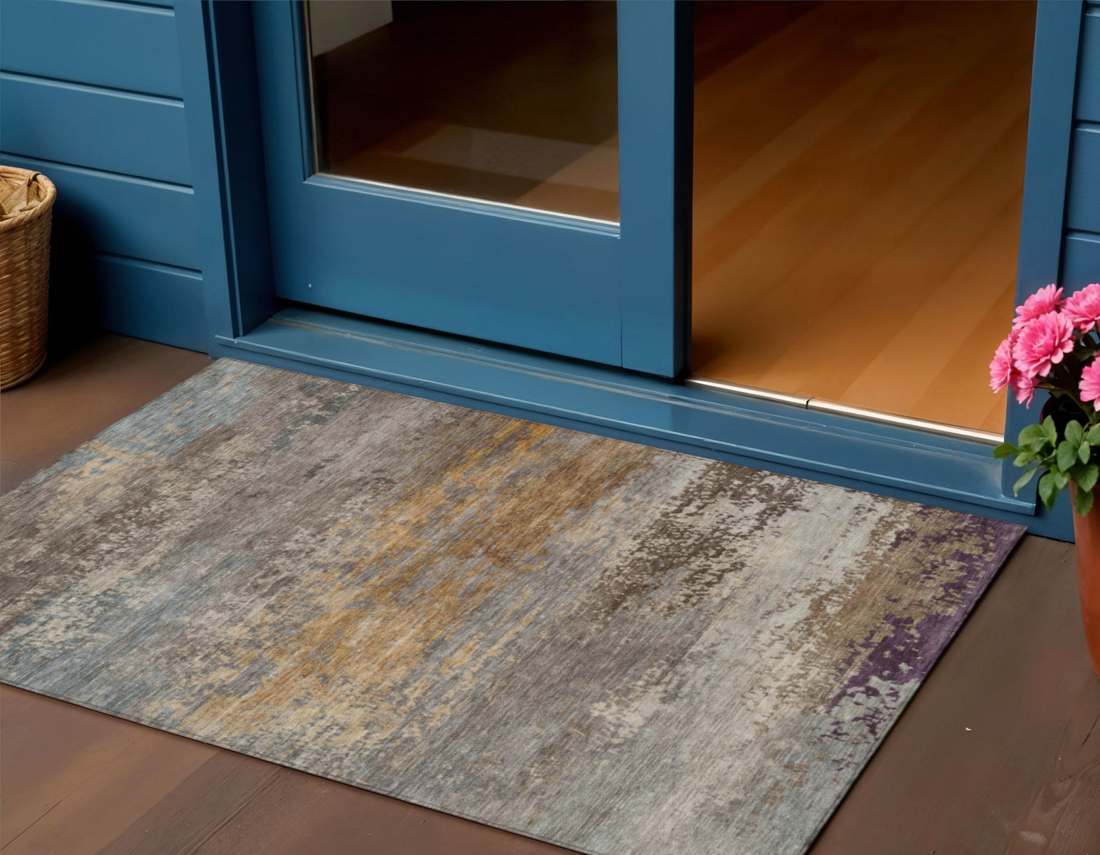 3' X 5' Brown Gray And Purple Abstract Washable Indoor Outdoor Area Rug Перейти к содержанию