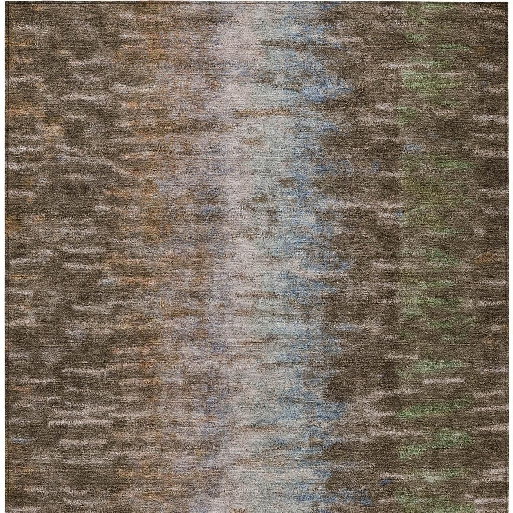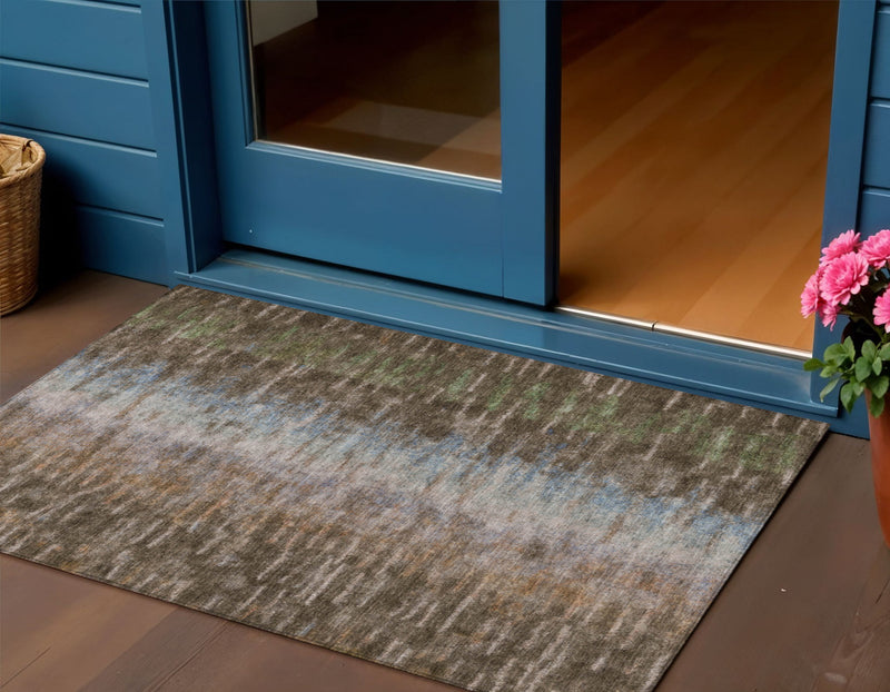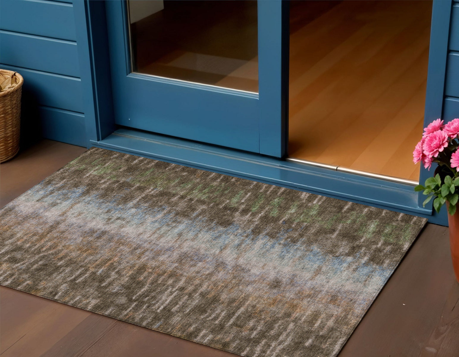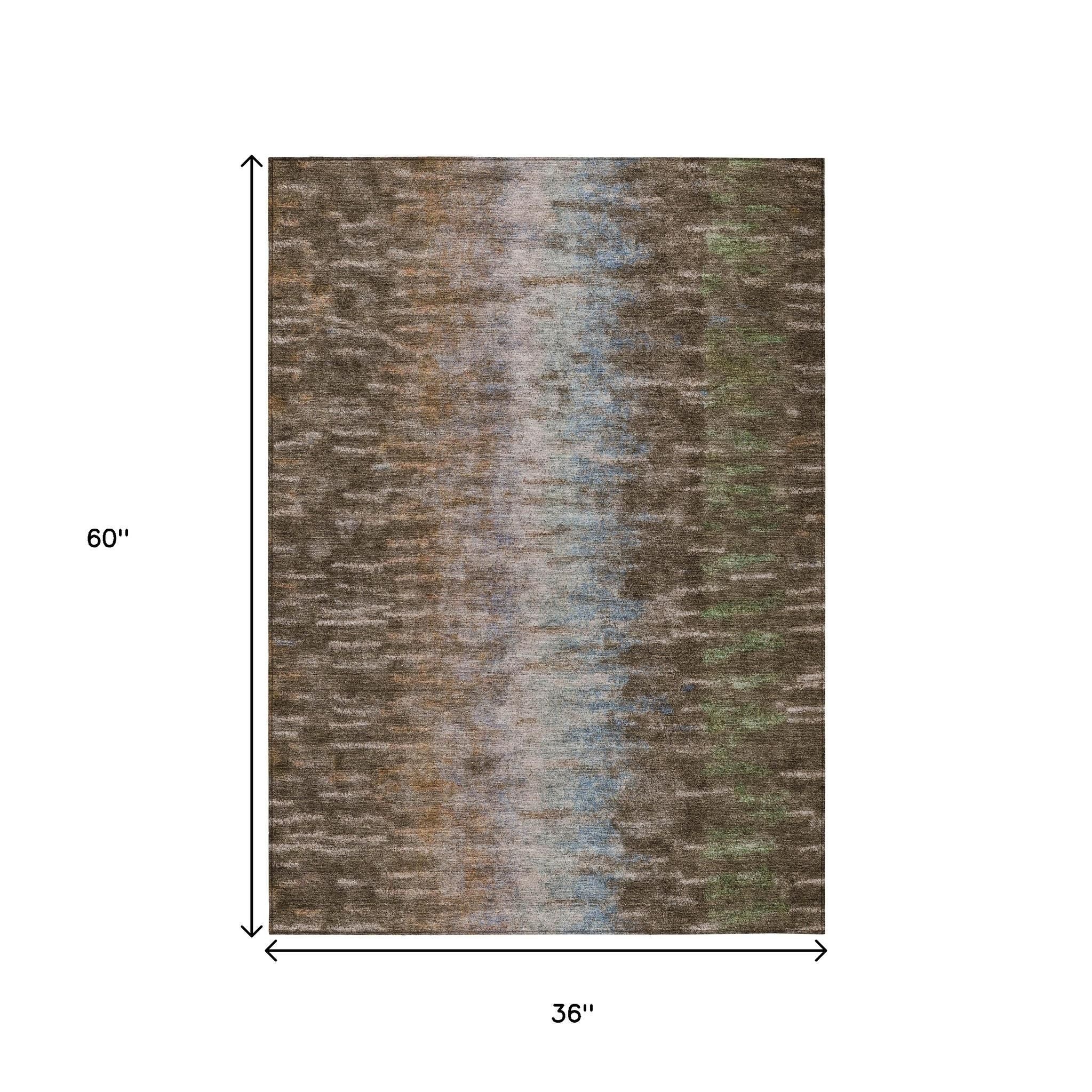 3' X 5' Brown Green And Ivory Abstract Washable Indoor Outdoor Area Rug
