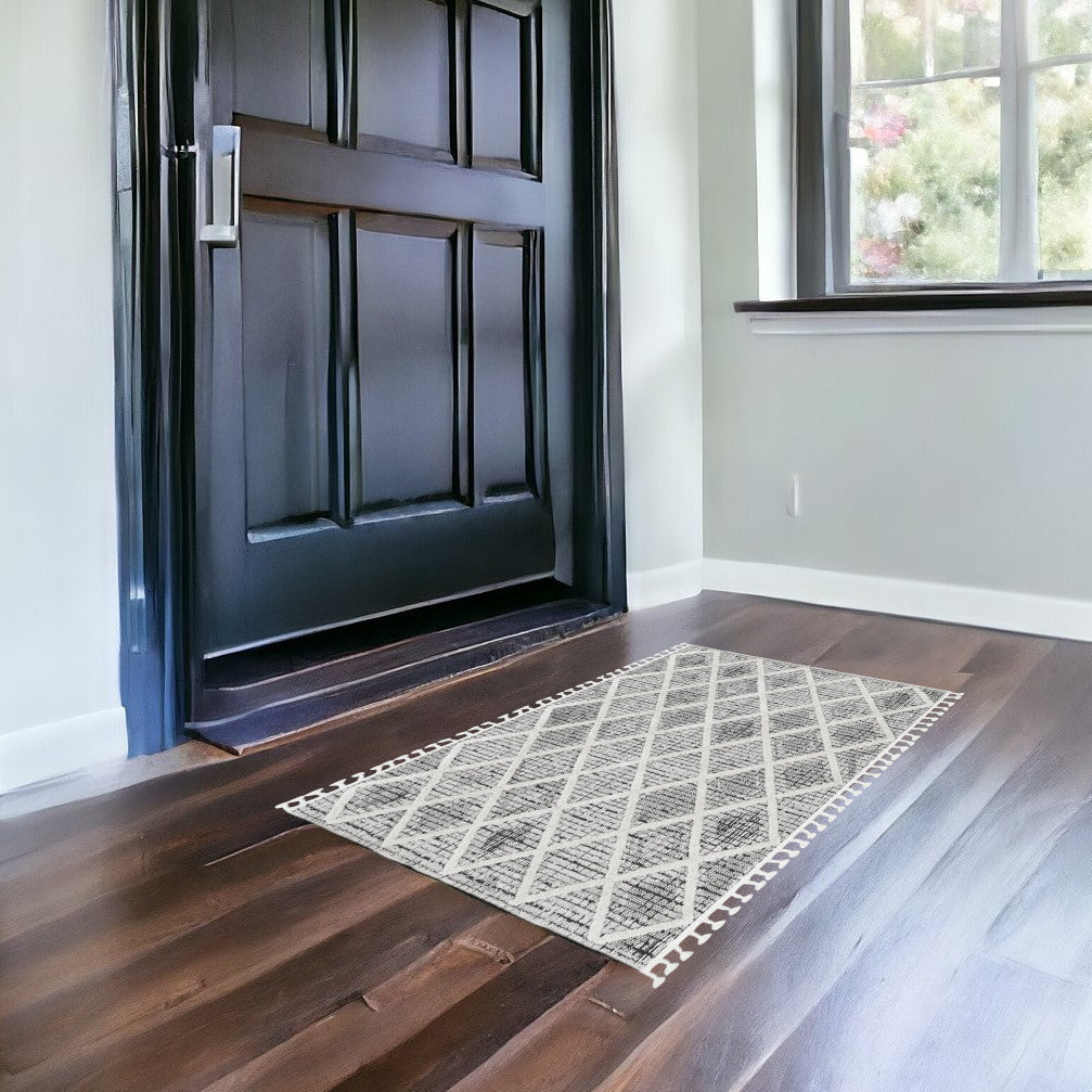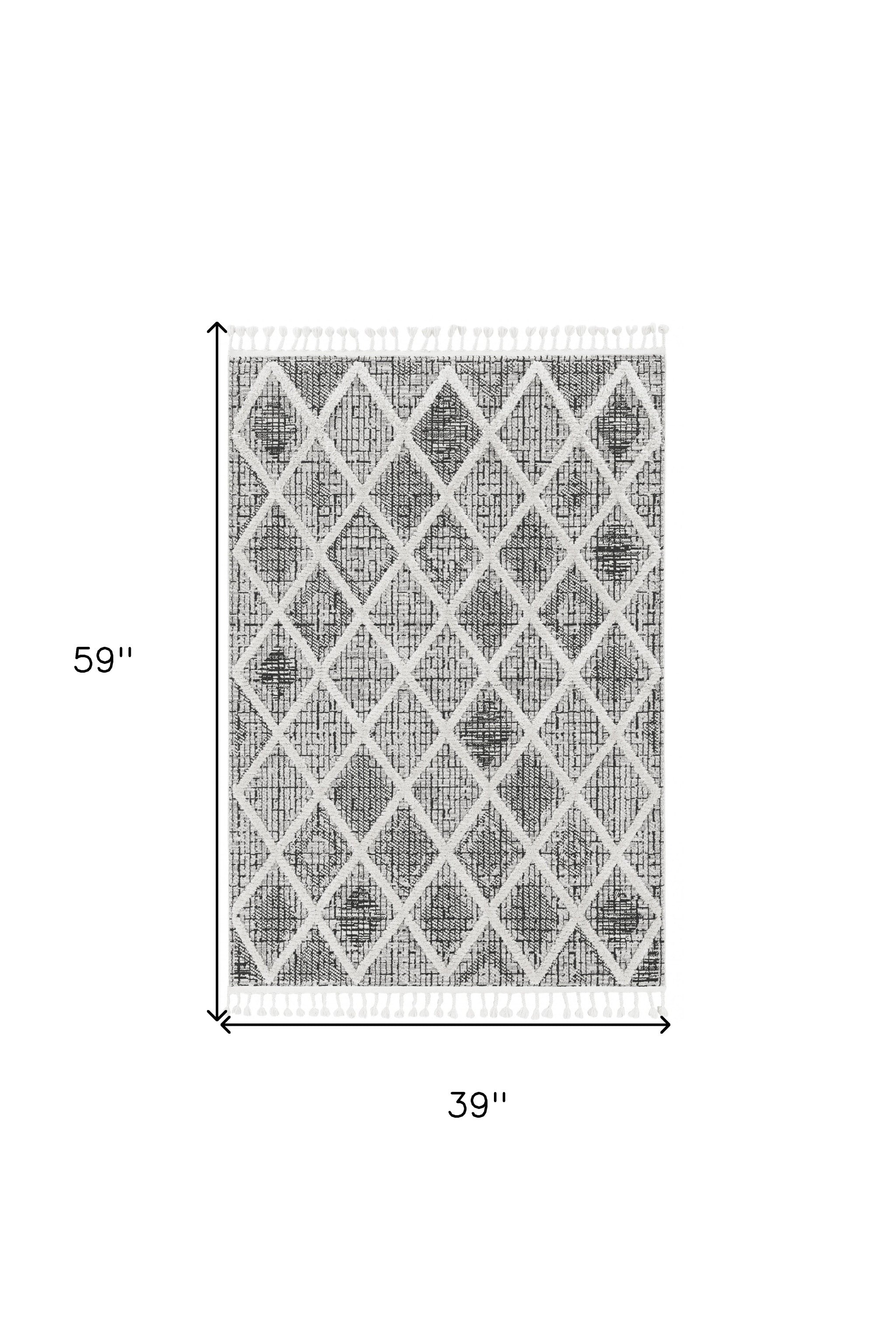 3' X 5' Charcoal Diamonds Area Rug With Fringe