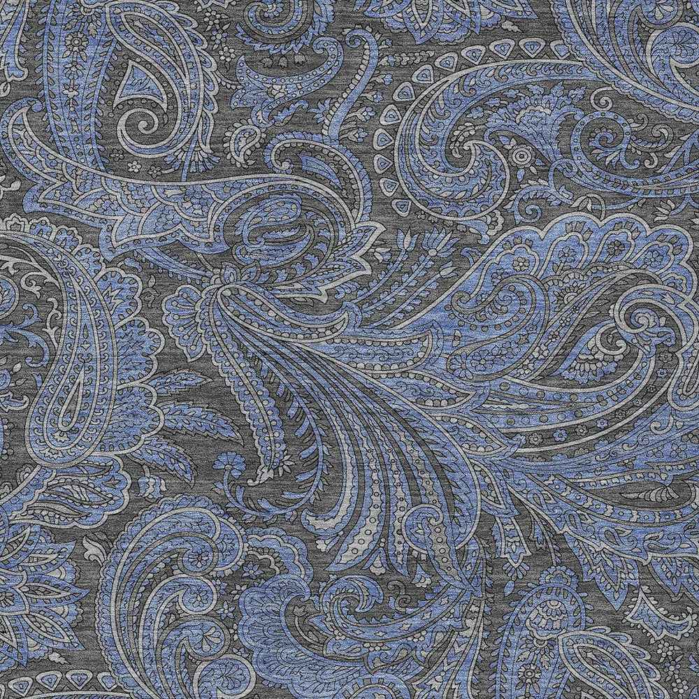 3' X 5' Charcoal Gray And Blue Paisley Washable Indoor Outdoor Area Rug