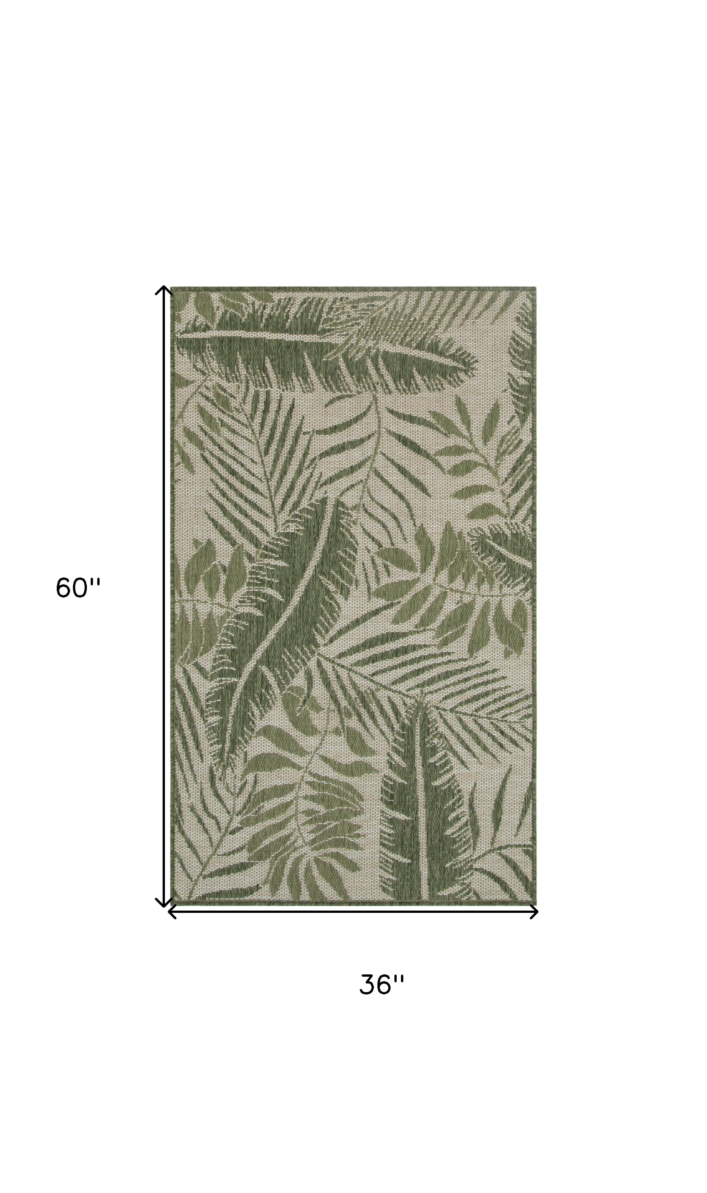 3' X 5' Green And Ivory Palm Leaf Indoor Outdoor Area Rug