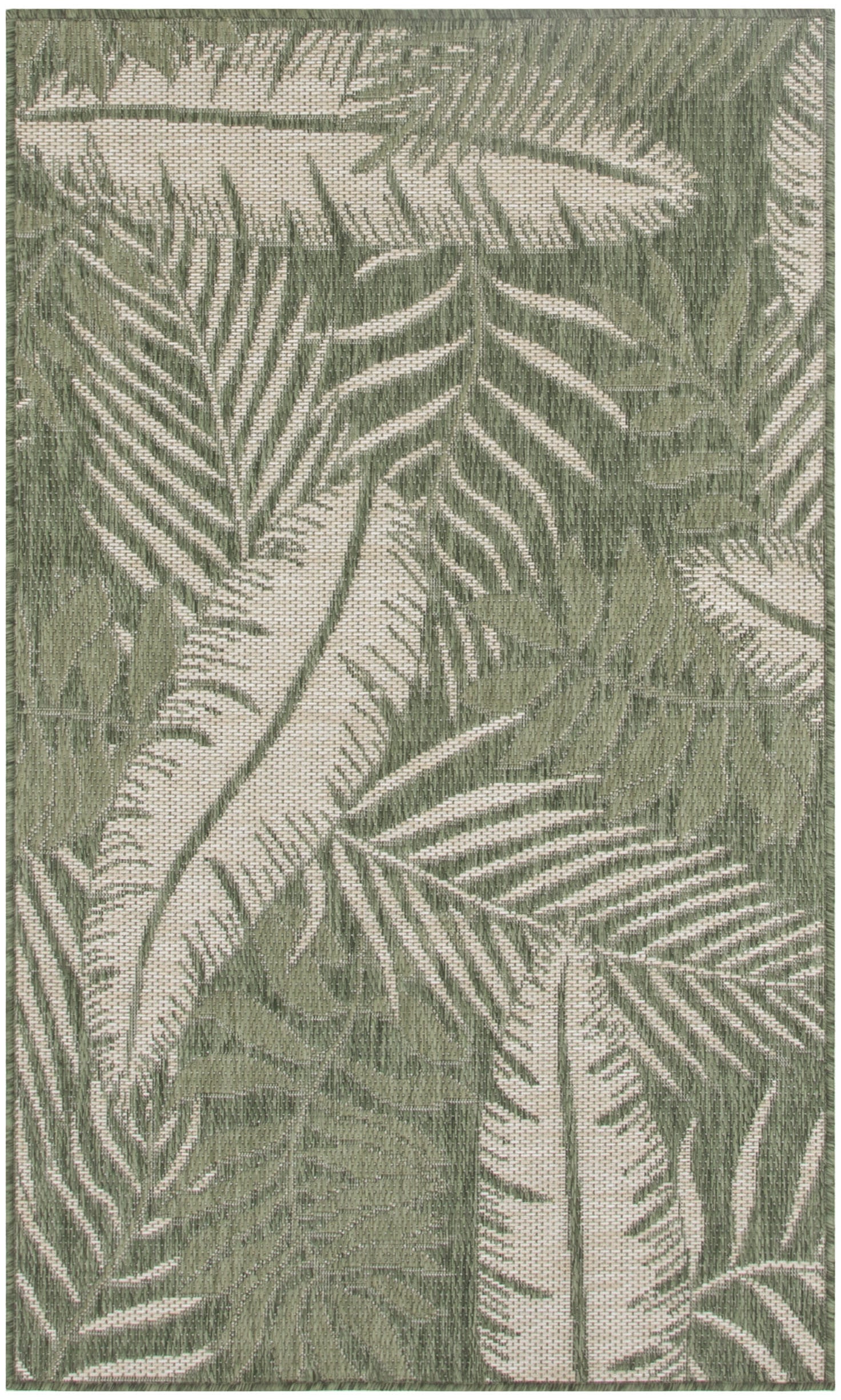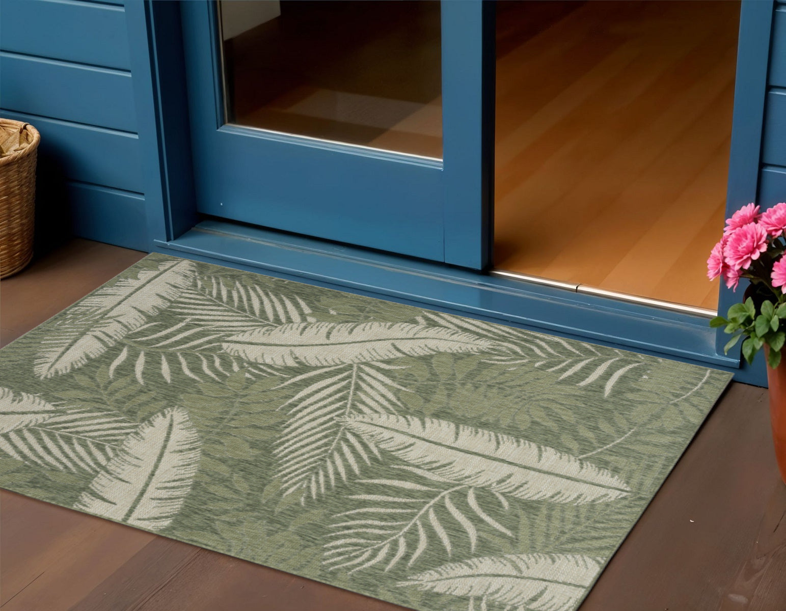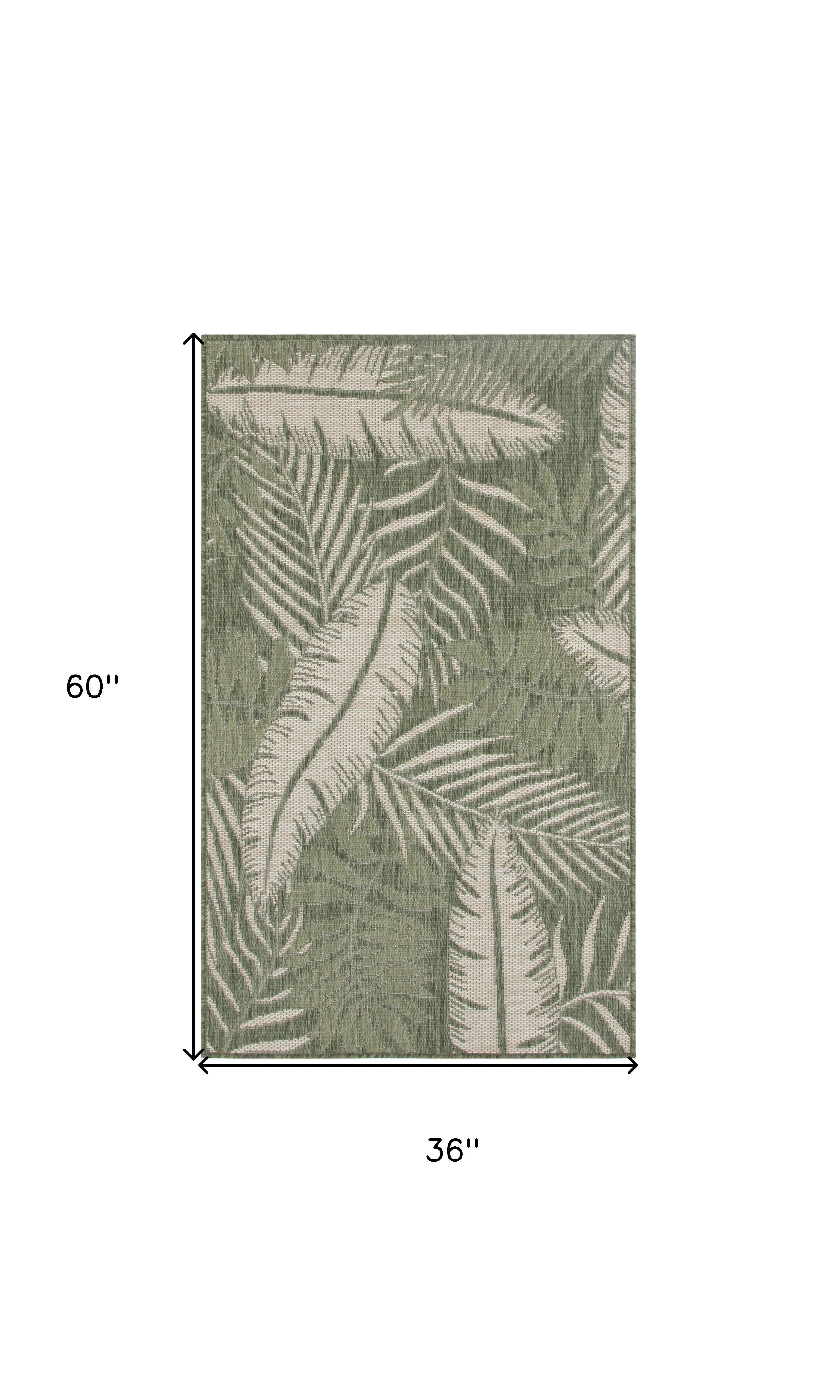 3' X 5' Green And Ivory Palm Leaf Indoor Outdoor Area Rug