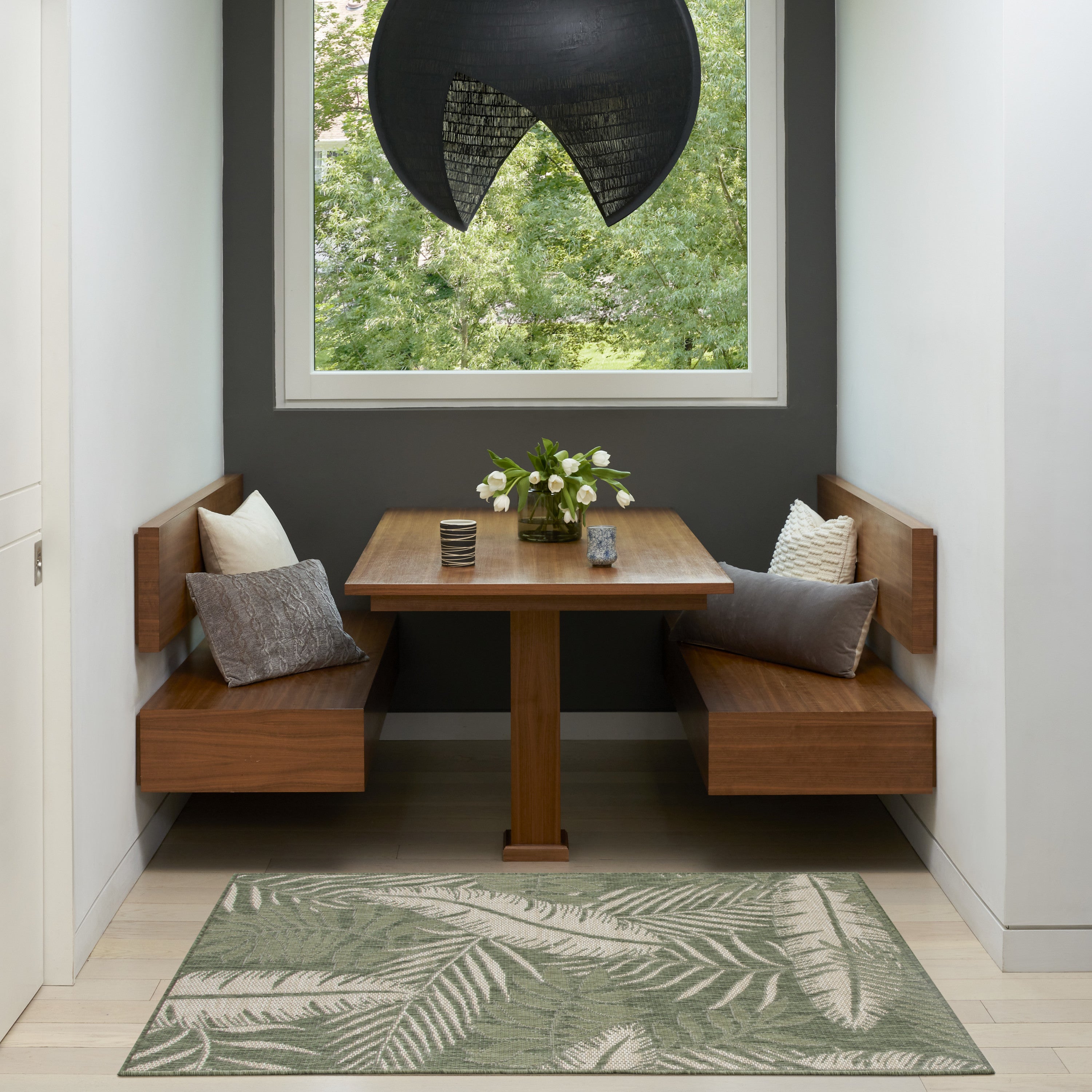 Set an inviting tone in your space with this 3-foot x 5-foot green and ivory palm leaf indoor outdoor area rug. This rectangle shaped rug features a palm leaf design that will work well both indoors or out. A classic shape marries with good looking design for your living room, hall, bedroom, porch, patio, or poolside. Versatile in use, durable, and easy to maintain, this rug is an ideal solution to add a decorative and inviting touch to your indoor or outdoor space. 36-inch h x 60-inch w x 0.3-inch d.
