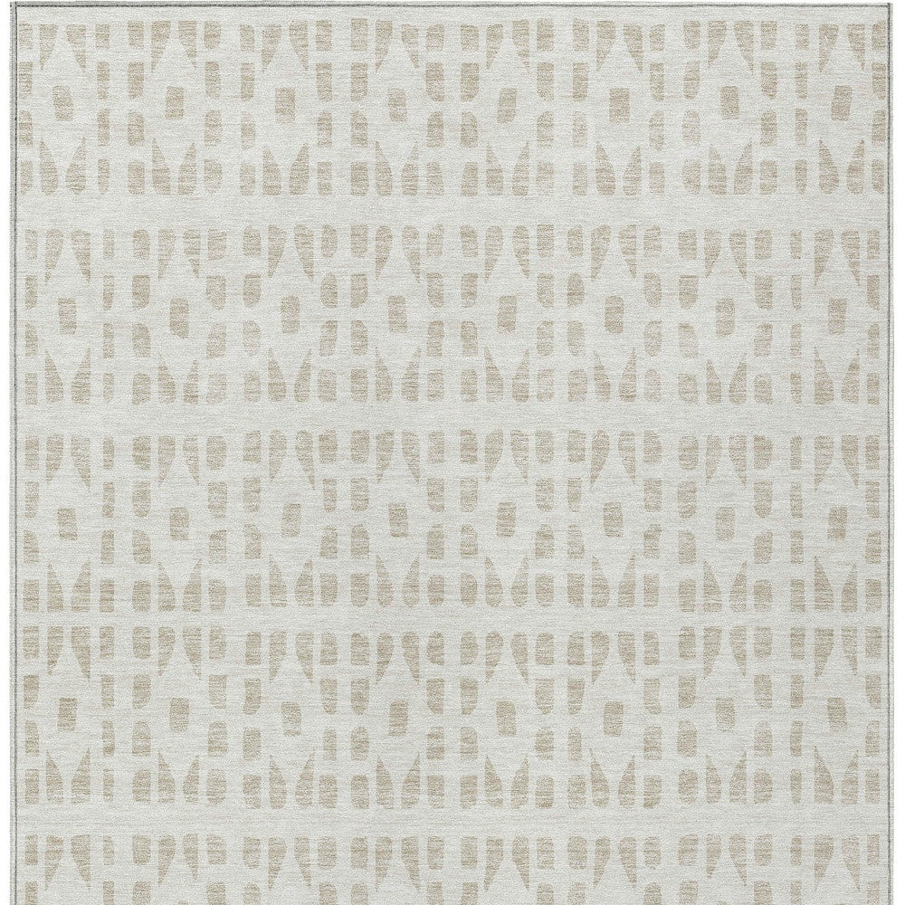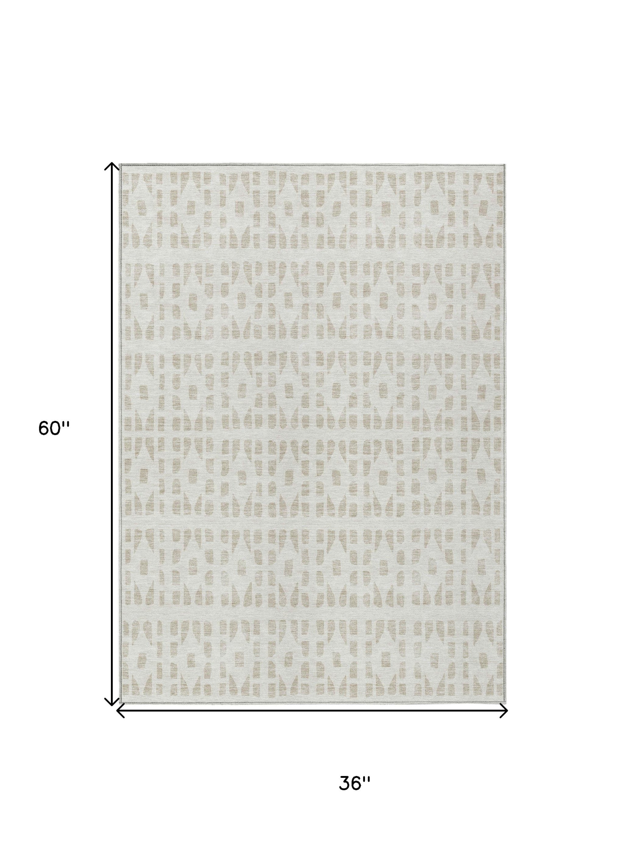 3' X 5' Ivory And Beige Geometric Washable Indoor Outdoor Area Rug