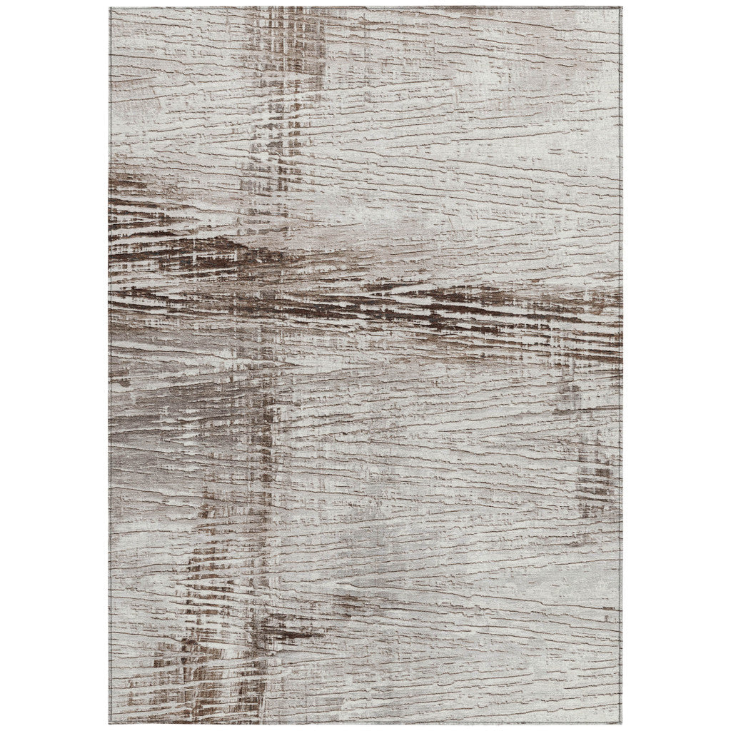 3' X 5' Taupe And Ivory Striped Washable Indoor Outdoor Area Rug
