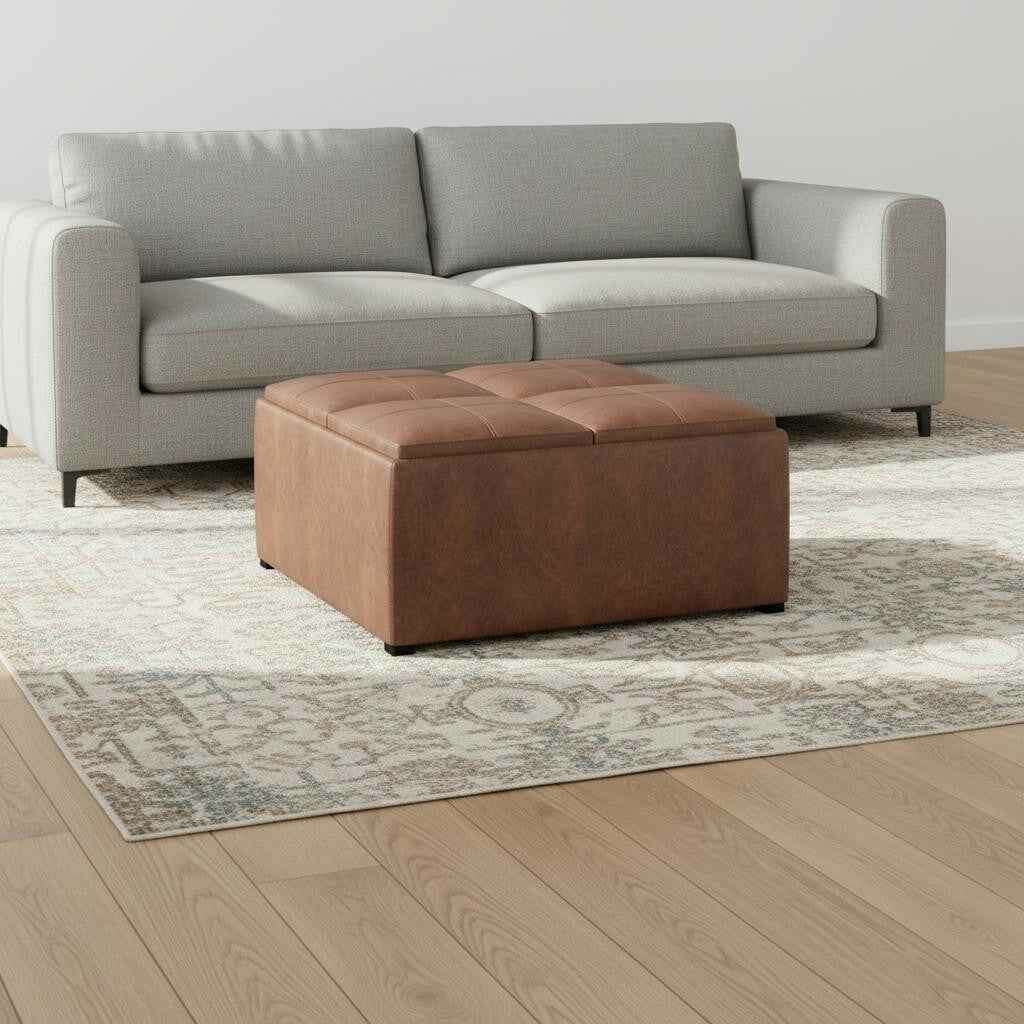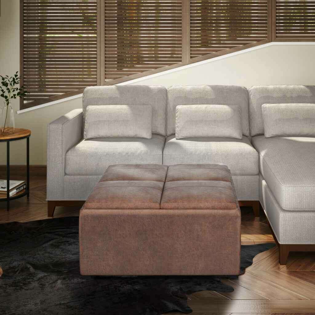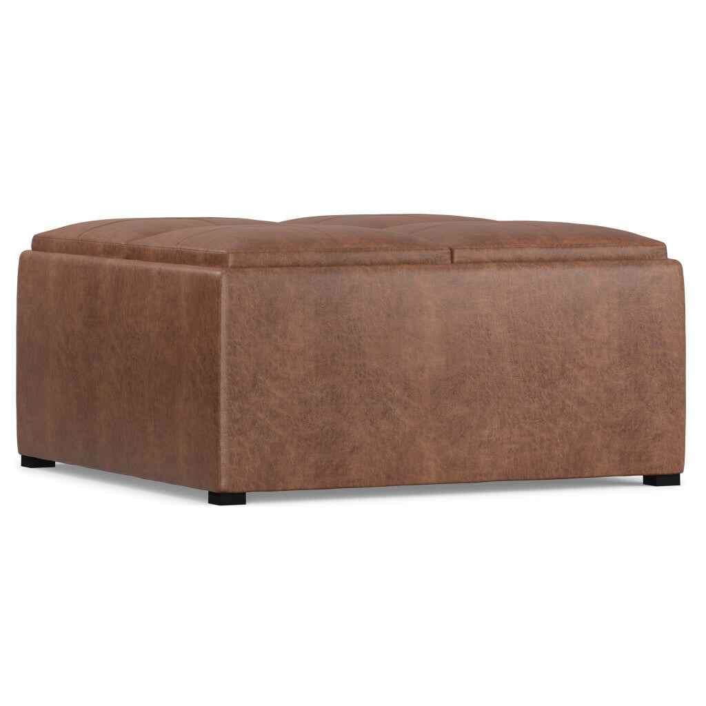 35" Brown and Black Leather Cocktail Ottoman With Storage - Перейти к содержанию