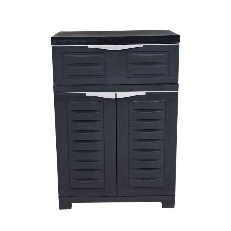 35" Dark Gray Heavy Duty Plastic Two Door One Drawer Utility Cabinet - Перейти к содержанию