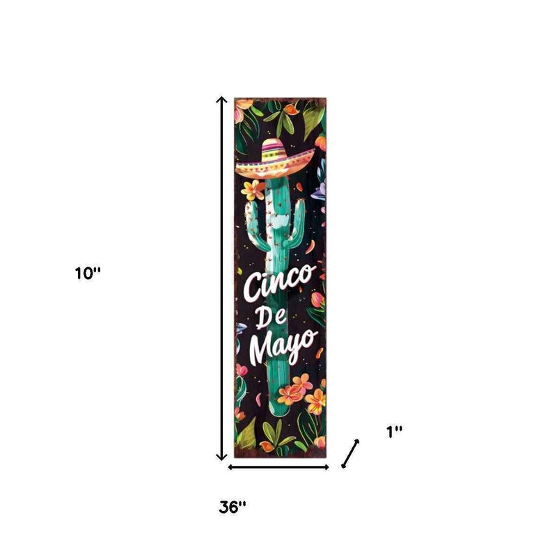 36" Black And Green Solid Wood Cinco de Mayo Cactus Porch Sign
