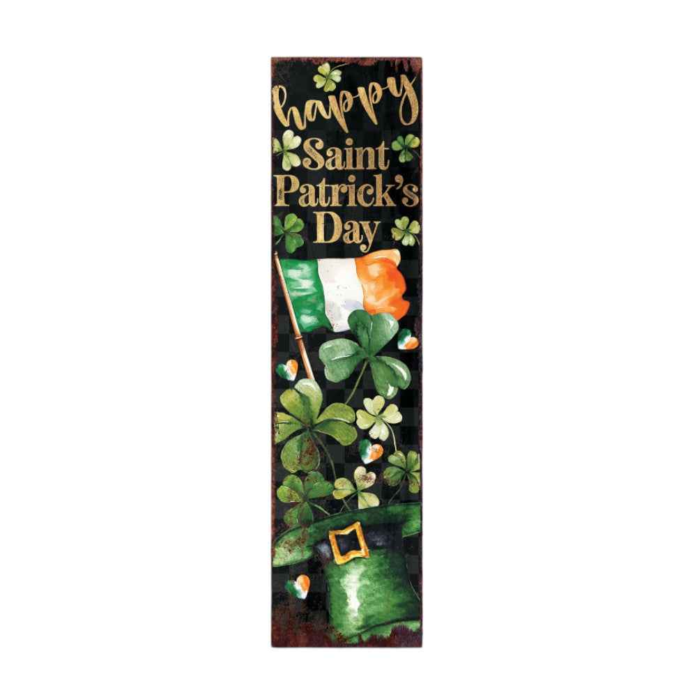 36" Black Gold And Green Solid Wood Happy St Patrick's Day Shamrock Porch Sign