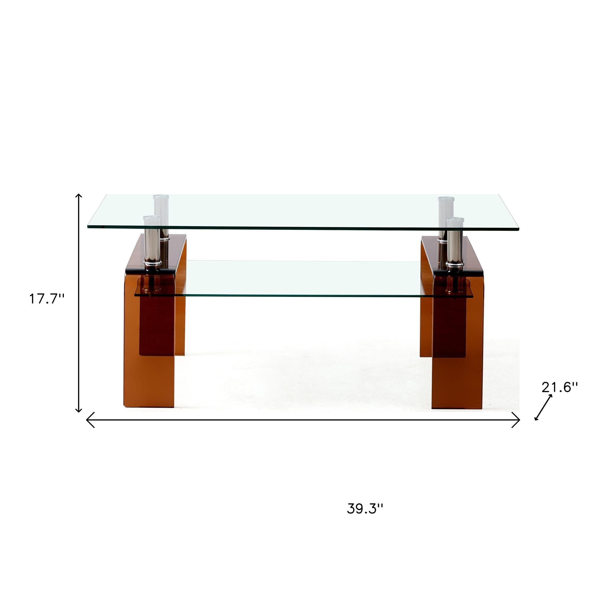 39" Clear and Brown Glass Coffee Table With Shelf Перейти к содержанию