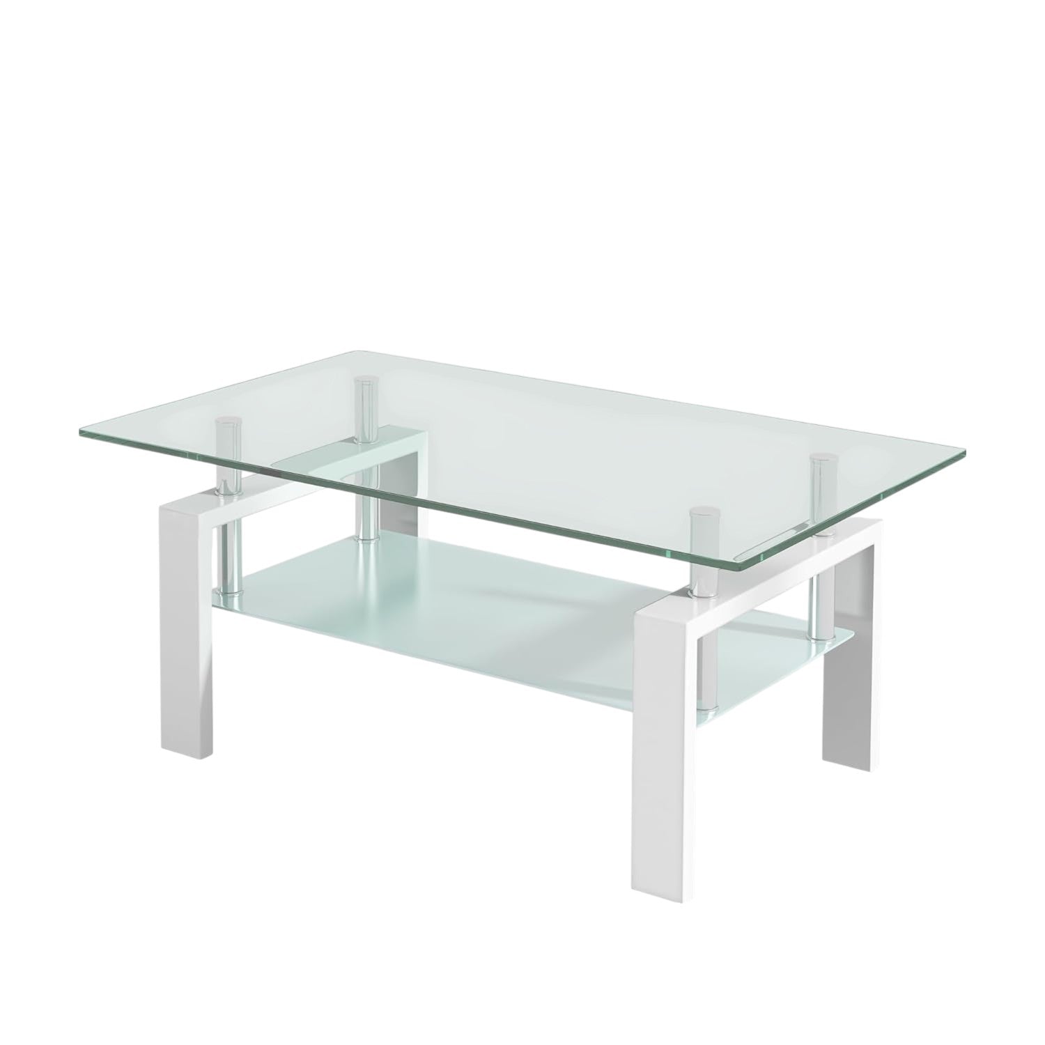 39" Clear and White Glass and Steel Coffee Table With Shelf - Перейти к содержанию