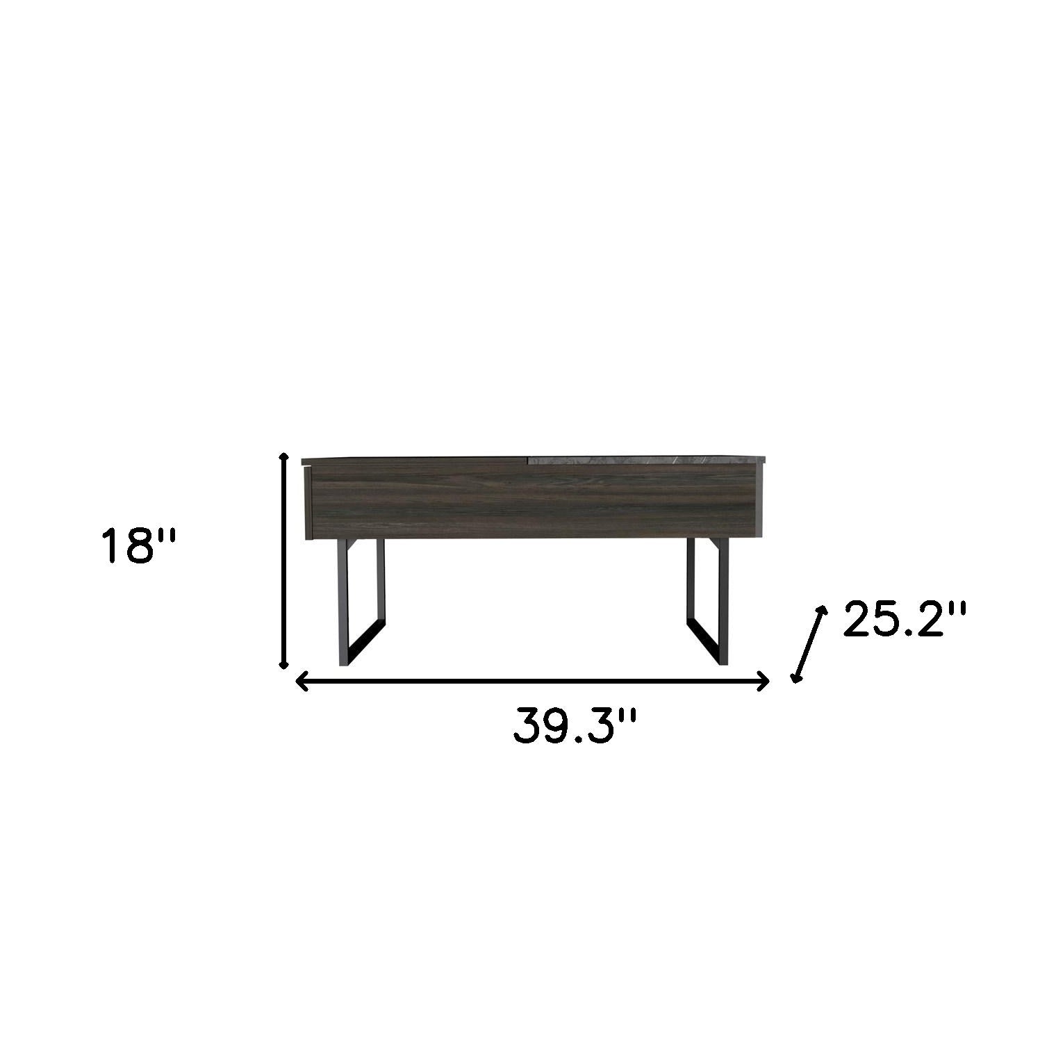 39" Espresso And Black Metal Lift Top Coffee Table With Drawer