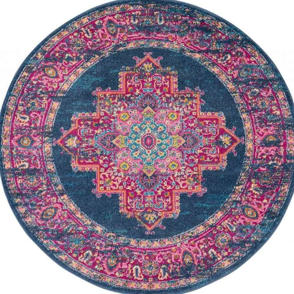 Set an inviting tone in your space with this 4' blue round power loom area rug. Made in Turkey, this rug offers high quality combined with good looking designer sensibilities. Place this area rug against a hardwood or tile floor and it will enliven your living space with style and sophistication. 1" H x 48" W x 48" D