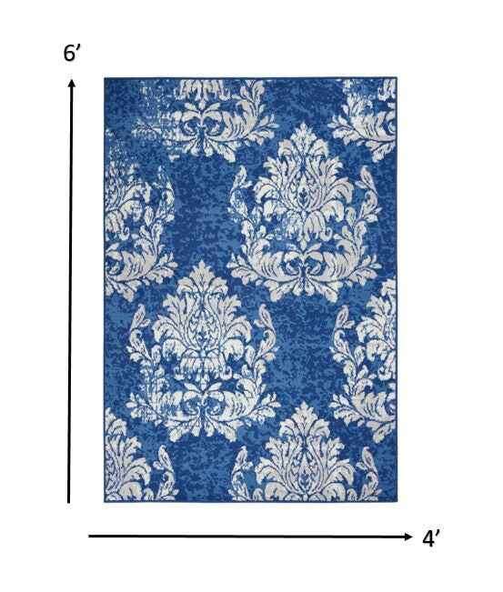 4' X 6' Blue And Ivory Floral Dhurrie Area Rug