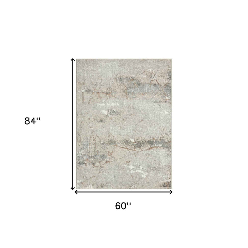 5' X 7' Beige Gray And Brown Abstract Stain Resistant Area Rug - Перейти к содержанию
