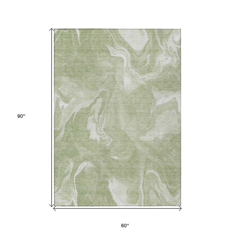 5' X 8' Artichoke Green Fern Green And Ivory Abstract Washable Indoor Outdoor Area Rug