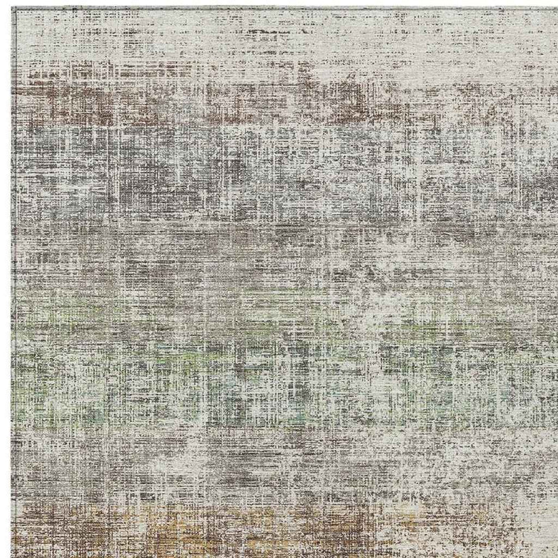5' X 8' Beige And Brown Striped Washable Indoor Outdoor Area Rug