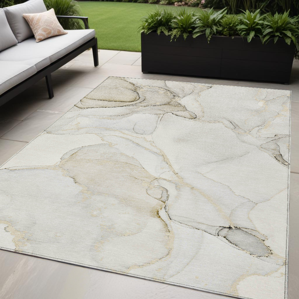 5' X 8' Beige and Ivory Abstract Washable Non Skid Indoor Outdoor Area Rug