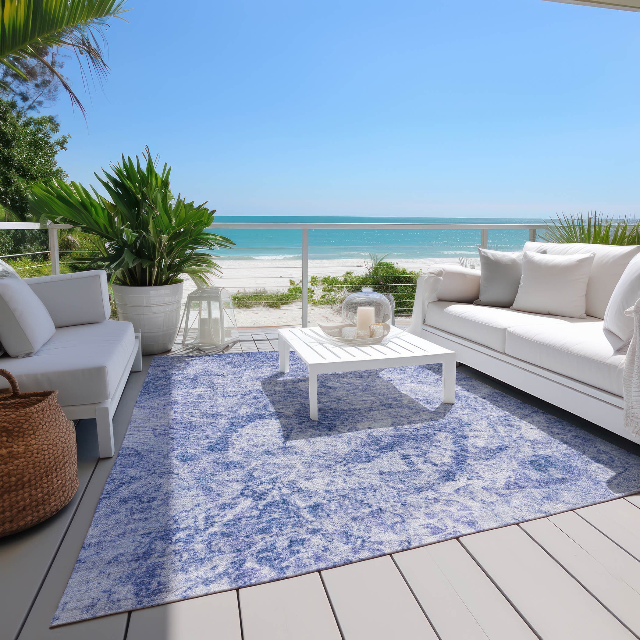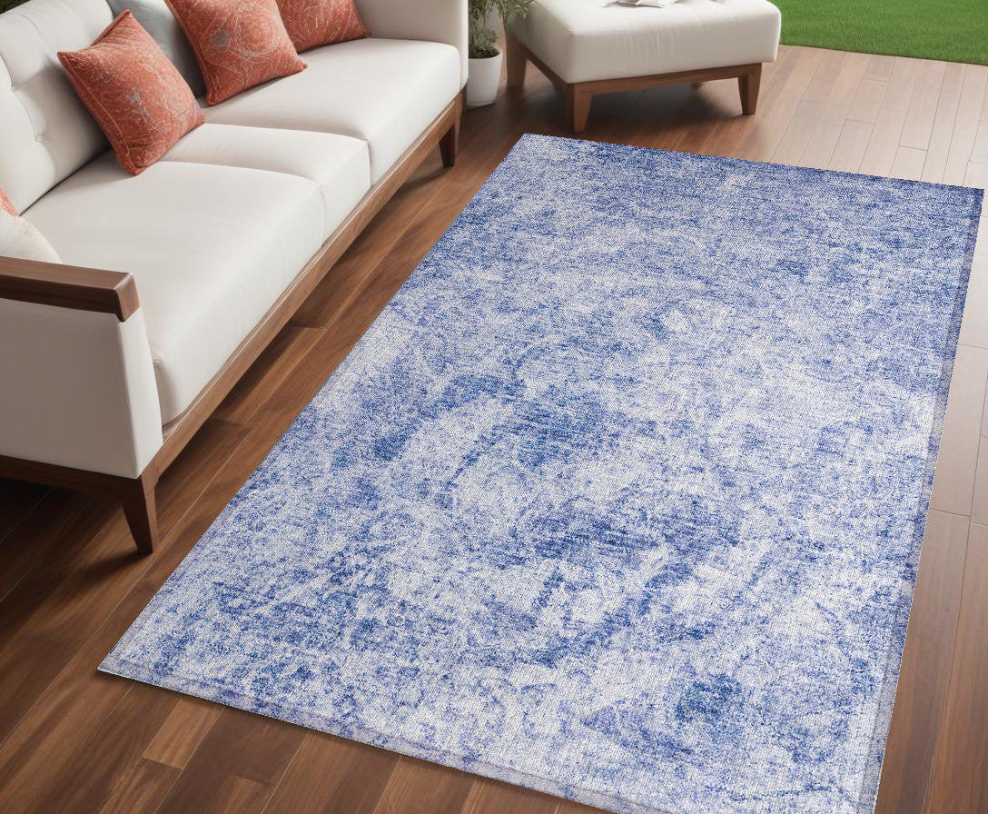 5' X 8' Blue Abstract Washable Non Skid Indoor Outdoor Area Rug